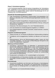 5 Phase 2: Konkret isierungsphase In der Konkretisierungsphase findet die genaue Ausgestaltung der Veranstaltung statt – angefangen von der Auswahl der Veranstaltungsräume über die Beschaffung des Caterings und gegebenenfalls weiterer externer Dienstleistungen bis hin zur Festlegung des Veranstaltungsablaufs. Auswahl der Veranstaltungsräume (Location) → Lage: Erreichbarkeit mit öffentlichen Verkehrsmitteln/ Fahrradstellplätze, Ent - fernung zu relevanten Orten und Übernachtungsmöglichkeiten beachten, Fuß - läufigkeit → Ökologische Qualität: Energieeffizienz, Energieversorgung, Baumaterialien → Zahl, Größe und Ausstattung der Räume (Barrierefreiheit, Heizung, Lüftung und Klimatisierung, Tageslicht) → Infrastruktur: Öko -Stromversorgung, Ton, Licht, Präsentationstechnik → Ist für den Standort ein Umweltmanagement eingeführt (z. B. EMAS)? → Ist ein Abfallmanagement vorhanden (vermeiden, wiederverwenden, verwerten, beseitigen)? Programm und Rahmenprogramm → Anfang und Ende: An - und Abreise mit öffentlichen Verkehrsmitteln ermöglichen → Vortragende: auf ein ausgeglichenes Verhältnis von Männern und Frauen ach - ten → Rahmenprogramm: Soll es ein Rahmenprogramm geben? Lassen sich darin nachhaltige „Highlights“, z. B. Führungen und Besichtigungen ökologischer oder sozialer Vorzeigeprojekte, integrieren? Werbung und Kommunikation → Ankündigung, Tagungsunterlagen und Materialien: in geschlechterneutraler Sprache (inkl. Bildsprache); digitale Medien nutzen (online -basiertes Informa - tions - und Teilnehmendenmanagement z. B. über eine Veranstaltungs -App oder Konferenzwebsite); Ausdrucke vermeiden, wenn unvermeidbar, bei Papier und Druck auf das Umweltzeichen „Blauer Engel“ achten; über Nachhaltigkeit in der Veranstaltungsorganisation informieren; Hinweise zur umweltverträg li- chen Anreise und Übernachtung → Pendelverkehr und Mobilität vor Ort: umweltverträglich und barrierefrei → Auf Gastgeschenke und Give -aways verzichten; wenn Verzicht nicht möglich, nachhaltige Produkte auswählen, die bestenfalls einen ökologischen Mehrw ert haben Personaleinsatz → Ausreichende Qualifikation und Information des Personals zu Nachhaltigkeits - aspekten sicherstellen, ggf. Schulungen und Unterweisungen durchführen (z. B. zum Einsatz von Reinigungsmitteln, zum Abfallkonzept und zur Barrierefrei - heit) → Zuständigkeiten und Verantwortlichkeiten festlegen