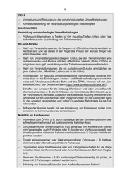 9 ZIELE → Vermeidung und Reduzierung der verkehrs induzierten Umweltbelastungen → Klimaneutralstellung der veranstaltungs bedingten Reisetätigkeit MASSNAHMEN Vermeidung verkehrsbedingter Umweltbelastungen → Prüfung von Alternativen zu Treffen vor Ort: virtuelles Treffen (Video - oder Tele- fonkonferenz oder -zuschaltung von Teilnehmenden) An- und Abreise → Wahl von Veranstaltungsorten, die bequem mit öffentlichen Verkehrsmitteln er - reichbar sind und bei denen in der Regel das Prinzip der „kurzen Wege“ ver - wirklicht werden kann → Wahl von Veranstaltungszeiten (Beginn/ Ende), die den Teilnehmenden eine problemlose An - und Abreise mit dem öffentlichen Verkehr (Bahn, ÖPNV) er - möglichen, dazu ggf. vorab Analyse des Teilnehmendenkreises erforderlich → Wahl von Veranstaltungsorten, die ein Aufladen von E -Autos ermöglichen (ei - gene Ladesäulen, öffentliche Ladesäulen in der Nähe) → Informationen zur Nutzung umweltverträglicher Verkehrsmittel (explizite Hin - weise dazu in den Einladungen: Anreise - und Wegbeschreibunge n sowie Hin - weise auf Fahrplanauskünfte der Bahn und des ÖPNV, Verweis auf den „Um - weltMobilCheck“ der Deutschen Bahn https://www.umweltmobilcheck.de/ ) → Schaffen von Anreizen für die Nutzung öffentlicher un d/ oder umweltfreundli - cher Verkehrsmittel, z. B. durch Anbieten von Kombitickets (Eintrittskarte zu ei - ner Veranstaltung beinhaltet zusätzlich die kostenlose Nutzung öffentlicher Ver - kehrsmittel zur An - und Abreise) oder Vereinbarungen mit der Deutschen Bahn für das Angebot vergünstigter und/ oder CO 2-neutraler Bahntickets für die Teil - nehmenden → Abfrage der Anreise bereits mit der Anmeldung , um Emissionen später kom - pensieren zu können und um zu sensibilisieren Mobilität am Konferenzort → Information zum ÖPNV, z. B. durch Aushänge, auf der Konferenzplattform oder aufmerksam machen auf gut funktionierende Fahrplan -Apps → Zurücklegen kurzer Entfernungen zu Fuß; abhängig vom Konferenzort können vom Veranstalter auch Fahrräder oder E -Scooter z ur Verfügung gestellt oder eine Kooperation mit einem Fahrradverleihsystem oder E -Scooter -Verleih ein - gerichtet werden → Einsatz emissionsarmer oder lokal emissions freier Fahrzeuge, z. B. batterie - elektrische oder alternativ angetriebene Fahrzeuge → Organisation eines Shuttleservice oder von Fahrgemeinschaften für die Wege zwischen Hotel, Konferenzort und/ oder Ankunfts -/Abreiseort (Bahnhof, Flugha - fen) → Wenn ein Shuttleservice z.B. für hochrangige Gäste notwendig ist, prüfen, ob dieser mit E -Fahrzeu gen realisiert werden kann. → Schulung von Fahrzeugführenden zum „kraftstoffsparenden Fahren“