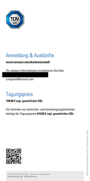 201701 Strahlen fl8 105x210 w 20 10 12 | Bildnachweis: fotolia Anmeldung & Auskünfte www.tuvsud.com/akademie/ssmfi Für weitere Informationen kontaktieren Sie bitte congress@tuvsud.com Tagungspreis 720,00 € zzgl. gesetzlicher USt. Für Vertreter von Aufsichts und Genehmigungsbehörden beträgt der Tagungspreis 410,00 € zzgl. gesetzlicher USt. TÜV SÜD Akademie GmbH Tagungen und Kongresse Westendstraße 160 80339 München