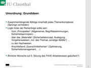 Institut für Endlagerforschung 3Sicherheitsanforderungen: Vorschläge zur Struktur 28.9.2018 Umordnung : Grundideen Zusammenhängende Abfolge innerhalb jedes Themenkomplexes (Sprünge vermeiden) Logik hinter der Reihenfolge sollte sein: -Vom „Prinzipiellen“ (Allgemeines, Begriffsbestimmungen, Sicherheitsprinzipien) … -über das „Materielle“ (Sicherheitskonzept, Auslegung, Vorgehensweisen, incl. des Themas „sonstige Abfälle“) … -zu den Nachweisen. -Anschließend „Querschnittsthemen“ (Optimierung, Sicherheitsmanagement, …). Ähnliche Wünsche auf 3. Sitzung des FAVE -Arbeitskreises geäußert(?)
