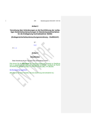 - 24 - Bearbeitungsstand: 09.04.2019 13:07 Uhr Artikel 2 Verordnung über Anforderungen an die Durchführung der vorläu- figen Sicherheitsuntersuchungen im Standortauswahlverfahren für die Endlagerung hochradioaktiver Abfälle (Endlagersicherheitsuntersuchungsverordnung – EndlSiUntV) § 1 […] (1) […] Artikel 3 Inkrafttreten Diese Verordnung tritt am Tag nach ihrer Verkündigung in Kraft. [Hier können Sie die Geltungszeit der Verordnung bestimmen. Hinweise zur Gestaltung, auch zu gespaltenem, bedingtem oder gekoppeltem Inkrafttreten: Handbuch der Rechts- förmlichkeit Rn. 804-809 und 832 f. in Verbindung mit Rn. 540 f. und 749-754.] Der Bundesrat hat zugestimmt. [Bitte löschen Sie diese Textstelle, falls eine Zustimmung nicht erforderlich ist.]