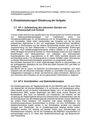 Seite 3 von 6 Die ermittelten Schnittstellen, relevante Gruppen bzw. Stakeholder und Anforderungen aus einschlägigen Rechtsbereichen sind in einem eigenständigen Bericht zu dokumentieren und der Auftraggeberin spätestens bis zum Ende des dritten Quartals 2021 (per Mail) zur Verfügung zu stellen. Änderungen die sich im Rahmen der Koordinierungsprozesse ergeben, sind entsprechend in der Dokumentation zu aktualisieren. 3.3. AP 3: Fachliche Unterstützungsarbeit im Erstellungsprozess Insbesondere das StrlSchG (z. B. Anlage 6) sowie der ANoPl (derzeit noch im Entwurf) enthalten Vorgaben zu den wesentlichen Elementen des BNoPlkG. Darauf aufbauend wurde ein erster Entwurf einer Struktur des BNoPlkG entwickelt. Der Entwurf der Struktur soll durch den in AP 1 und ggf. in AP 2 ermittelten Sachstand sowie sukzessive durch Diskussionsergebnisse, fachliche Einschätzungen und Koordinierungsprozesse erweitert und ergänzt werden. Bei dem Erstellungsprozess des BNoPlkG soll durch die Auftragnehmerin fachlich Unterstützungsarbeit geleistet werden. Dies umfasst insbesondere die • Erarbeitung von exemplarischen Regeltextentwürfen • Fachliche Beratung, Kommentierung und Ergänzung zu bzw. von erarbeiteten Strukturen und Regeltextentwürfen Die Ausarbeitungen und Vorschläge sind der Auftraggeberin in Form eines oder mehrerer schriftlicher Berichte (per Mail) nach Absprache innerhalb der Laufzeit des Vorhabens zur Verfügung zu stellen. 3.4. AP 4: Fachliche und organisatorische Begleitung im Koordinierungsprozess Als Teil des Erstellungsprozesses finden Koordinierungsprozesse mit anderen Beteiligten statt. Diese Koordinierungsprozesse sollen fachlich (durch Vorträge, Bewertungen, Einschätzungen in Diskussionen, etc.) und organisatorisch (durch Ausrichten von Veranstaltungen, Protokollierung, Archivierung, etc.) unterstützt werden. Die Unterstützung erfolgt • bei Beratungsgängen in Ausschüssen und Fachgremien, • im Beteiligungsprozess von Behörden und Institutionen, die von dem Regelwerk betroffen sind, sowie • im Kommentierungsprozess der Regeltextentwürfe. Als Teil des Koordinierungsprozesses, zur Information und Diskussion der Regelungsentwürfe in Ausschüssen und Fachgremien oder bei anderen Zusammenkünften muss die Auftraggeberin bei der Vorstellung und fachlichen Begründung der Regeltextentwürfe unterstützt werden. Dazu zählen die Präsentation und fachliche Erläuterung von Neuerungen und die Mitwirkung bei der fachlichen Diskussion. Hierfür sind im Mittel vier innerdeutsche Reisen im Jahr vorzusehen. Kommentare und Ergebnisse aus den Erarbeitungs-, Diskussions- und Koordinierungsprozessen sind für die Auftraggeberin zu dokumentieren und auszuwerten sowie für die weitere Behandlung aufzubereiten und aus fachlicher Sicht Vorschläge zum Umgang zu erarbeiten.