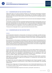 STADT ESSEN KATASTROPHENSCHUTZBEDARFSPLAN Stand: 19.04.2022 55 STAAT UND ÖFFENTLICHE VERWALTUNG Im Bereich Sta at und öffentliche Verwaltung wird nicht von direkten Einschränkungen ausgegangen, jedoch können ggf. Stromau sfälle oder eingeschränkte Leistungsfähigkeit der Mitarbeitenden sekundär die Leistungsfähigkeit einzelner Verwaltungsbereiche mindern. TRANSPORT UND VERKEHR PKW , Busse und Züge heizen sich bei direkter Sonneneinstrahlung schnell auf. Versagt die Klimaanlage, besteht eine unmittelbare Gefahr für die sich darin befindenden Personen, die beispielsweise durch Stau weiter verschärft werden kann. Hitze führt auf Asphalt und an Brücken zu Hitzeaufbrüchen. Zum Teil sind Straßen nicht mehr befahrbar, was zu Staus und Problemen in Lieferketten führen kann. ABFALLENTSORGUNG Erhitzter Müll führt zu Geruchsbelästigung. Es ist zudem davon auszugehen, dass Mitarbeitende durch die schwere körperliche Arbeit nicht voll leistungsfähig sind. BEHÖRDEN UND ORGANISATIONEN MIT SICHERHEITSAUFGABEN (BOS) Es ist ein vermehrtes Auftreten von Wald - und Vegetationsbränden einzuplanen . Im Allgemeine n führt die schwere körperliche Arbeit der Feuerwehr zu schnellerer Erschöpfung, weshalb Einsatzkräfte häufi- ger als üblich Pausen einlegen müssen. Die schwere Einsatzkleidung ist eine zusätzliche Belastung. Zwi- schen den Einsätzen sind Pausen zum Erhalt der körperlichen Leistungsfähigkeit erforderlich, in denen auch die Möglichkeit zur Temperaturreduktion besteht. Entsprechend der höheren Auslastung der Rettungsmittel muss in der Leitstelle von einem erhöhtem Telefonievolumen und Disposi tionsaufwand ausgegan gen werden . Eine eventuelle Mangelversorgung führt zu einer Zunahme von Straftaten. Einschränkungen des öffent- lichen Lebens, beispielsweise Verordnungen zum Wassersparen, führen zu Demonstrationen und ggf. Widerstandshandlungen . 4.1.5 SCHADENSFOLGEN AUF WEITERE SCHUTZGÜTER UMWELT Steigende Temperaturen beeinflussen Ökosysteme und führen zu einer starken Veralgung von Gewäs- sern sowie einem massiven Fischsterben. Auch andere Tiere, z.B. in der Landwirtschaft , erliegen den hohen Temperaturen (Falltiere). Der Grundw asserspiegel sinkt, Böden trocknen aus. Dadurch besteht ein erhöhtes Risiko für die Entste- hung von Wald - und Vegetationsbränden. Es kommt zu einer stärkere n Schadstoffexposition von Stickoxiden oder Ozon. Durch den Ausfall von Kühlungen industrieller Anlag en bzw. selbstentzündlichen Prozessen besteht die Gefahr unkontrollierter Schadstoffimmissionen .