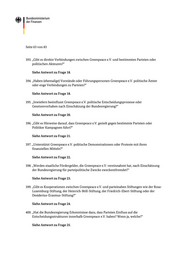 Seite 63 von 83 393. „Gibt es direkte Verbindungen zwischen Greenpeace e.V. und bestimmten Parteien oder politischen Akteuren?“ Siehe Antwort zu Frage 18. 394. „Haben (ehemalige) Vorstände oder Führun gspersonen Greenpeace e.V. politische Ämter oder enge Verbindungen zu Parteien?“ Siehe Antwort zu Frage 18. 395. „Inwiefern beeinflusst Greenpeace e. V. politische Entscheidungsprozesse oder Gesetzesvorhaben nach Einschätzung der Bundesregierung?“ Siehe Antwort zu Frage 20. 396. „Gibt es Hinweise darauf, dass Greenpeace e.V. gezielt gegen bestimmte Parteien oder Politiker Kampagnen führt?“ Siehe Antwort zu Frage 21. 397. „Unterstützt Greenpeace e.V. politisch e Demonstrationen oder Proteste mit ihren finanziellen Mitteln?“ Siehe Antwort zu Frage 22. 398. „Werden staatliche Fördergelder, die Greenpe ace e.V. vereinnahmt hat, nach Einschätzung der Bundesregierung für parteipolitische Zwecke zweckentfremdet?“ Siehe Antwort zu Frage 23. 399. „Gibt es Kooperationen zwischen Greenpeace e.V. und parteinahen St iftungen wie der Rosa- Luxemburg-Stiftung, der Heinrich-Böll-Stiftu ng, der Friedrich-Ebert-Stiftung oder der Desiderius-Erasmus-Stiftung?“ Siehe Antwort zu Frage 24. 400. „Hat die Bundesregierung Erkenntni sse dazu, dass Parteien Einfluss auf die Entscheidungsstrukturen innerhalb Green peace e.V. haben? Wenn ja, welche?“ Siehe Antwort zu Frage 25.