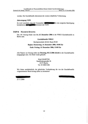 Geschäftsstelle des Wissenschaftlichen Beirats Globale Umweltveränderungen Protokoll 144. Sitzung- Entwurf Berlin, 16.-17. November 2006 werden. Die Geschäftstelle übernimmt die weitere inhaltliche Vorbereitung. Jahrestagung VDW Es wird vereinbart, dass die Veranstalter • •lltür eine mögliche Beteiligung kontaktieren ..._.nformiert die VDW. TOP 8: NÄCHSTE SITZUNG Die 145. Sitzung findet vom 14.-15. Dezember 2006 in der WBGU-Geschäftsstelle in Berlin statt. Geschäftsstelle WBGU Reichpietschufer 60-62, Raum 00.40 Beginn: Donnerstag, 14. Dezember 2006, 10:00 Uhr Ende: Freitag, 15. Dezember 2006, 13:00 Uhr Alle Papiere zur Sitzung sollen am Dienstag, 05.12.2006 abends in der Geschäftsstelle eingegangen sein. Als Hotel wurde gebucht: Hotel MARITIM Stauffenbergstraße 26 10175 Berlin Tel. 03 20651446 Wir bitten nachdrücklich, bei plötzlicher Verhinderung die von der Geschäftsstelle vorgenommene Reservierung selbst zu stornieren! 21.11.2006 12