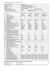 für den Standortbereich Gesamtstandort STOB-Nr.: 070756-010 vom 28.02.2025 (Aktiv) Bescheinigungsinhaber: 1&1 Mobilfunk GmbH, Wanheimer Straße 90-92 Standort 44267 Dortmund, Holzener Str. 50 Koordinaten (WGS 84) Nord: 51° 26' 47,000" Ost: 07° 31' 23,000" Standortspezifischer Umfeldfaktor: 1,0444 k. Entf. Grenze kontrollierb. Bereichs [m]: 6,70 Montagehöhe der Bezugsantenne [m]: 23,20 Gebäude-/Masthöhe [m]: 16,80 21 22 23 24 Betreiber Telekom Deutschland GmbH vertr. d.d. Deutsche Telekom Deutschland GmbH vertr. d.d. Deutsche Telekom Deutschland GmbH vertr. d.d. Deutsche Telekom Deutschland GmbH vertr. d.d. Deutsche Bewertungsmethode WattWächter WattWächter WattWächter WattWächter Beantragte Funkanlage Unterliegt 26./BlmSchV X X X X Ergänzungsbereich 1 Funksystem MB18_DT MB21_DT MB21_DT MB21_DT Antennentyp Funk Funk Funk Funk 2 Systemkennung 01-6.0.19 / Y3 R 01-6.0.17 / Y2 L 01-6.0.17 / Y3 R 01-6.0.18 / Y2 L 3 Montagehöhe Antennenunterkante [m] 26,00 26,00 26,00 26,00 4a Hauptstrahlrichtung N.ü.O. [°] 240,00 0,00 0,00 120,00 4b Mechanischer Downtilt in Grad (von/bis) 0,00 / 0,00 0,00 / 0,00 0,00 / 0,00 0,00 / 0,00 4c Elektrischer Downtilt in Grad (von/bis) 2,00 / 12,00 2,00 / 12,00 2,00 / 12,00 2,00 / 12,00 5 Betriebsfrequenz [MHz] 1805,00 2150,00 2150,00 2150,00 6a Antennenart (Bezeichnung) RRZZVV- 65AR6NV1 RRZZVV- 65AR6NV1 RRZZVV- 65AR6NV1 RRZZVV- 65AR6NV1 6b Polarisation x-polarisiert x-polarisiert x-polarisiert x-polarisiert 7a bei Spiegelantennen Durchmesser [m] 7b bei Spiegelantennen bzw. Fläche [m²] bei Radarantennen Pulsfrequenz [Hz] bei Radarantennen Pulslänge [uSek] bei Radarantennen Drehwinkel [Grad] 8 Leistung pro Kanal am Senderausgang [W] 45,00 30,00 30,00 30,00 9 Anzahl der Kanäle 1 1 1 1 10 Verluste Senderausgang/Antenne [dB] 0,20 0,20 0,20 0,20 11a Antennengewinn [dBi] 16,37 17,79 17,64 17,79 12 Abstand zum kontrollierbaren Bereich [m] 8,25 8,25 8,25 8,25 Vertikale Dämpfung -90° [dB] Vertikale Dämpfung 0° (Horizontalebene) [dB] Materialdämpfung in dB Horizontale Dämpfung in dB berücks. Horizontaler Winkel in Grad 3dB-Öffnungswinkel in Grad, vertikal 7,00 5,00 6,00 5,00 3dB-Öffnungswinkel in Grad, horizontal 68,00 67,00 65,00 67,00 EIRP [W] 1863,00 1722,35 1663,88 1722,35 Leistungsfaktor 2,00 2,00 2,00 2,00 Verlustfaktor 0,95 0,95 0,95 0,95 Gewinnfaktor 43,35 60,12 58,08 60,12 Dämpfungsfaktor (V) Dämpfungsfaktor (H) Dämpfungsfaktor (D) Sicherheitsabstand HSR [m] feldtheor. Verfahren feldtheor. Verfahren feldtheor. Verfahren feldtheor. Verfahren Sicherheitsabstand Vertikal -90° [m] feldtheor. Verfahren feldtheor. Verfahren feldtheor. Verfahren feldtheor. Verfahren Sicherheitsabstand Horizontal [m] feldtheor. Verfahren feldtheor. Verfahren feldtheor. Verfahren feldtheor. Verfahren Sicherheitsabstand Vertikal 0° [m] feldtheor. Verfahren feldtheor. Verfahren feldtheor. Verfahren feldtheor. Verfahren Grenzwert Personenschutz [V/m] Standortbezogener Sicherheitsabstand für den o.g. Standortbereich (mit Faktoren): Hauptstrahlrichtung [m]: feldtheor. Verfahren vertikal 90° [m]: feldtheor. Verfahren Datenblatt Funkanlage (Druckdatum 28.02.2025 10:39:1 1)
