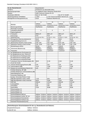für den Standortbereich Gesamtstandort STOB-Nr.: 070756-010 vom 28.02.2025 (Aktiv) Bescheinigungsinhaber: 1&1 Mobilfunk GmbH, Wanheimer Straße 90-92 Standort 44267 Dortmund, Holzener Str. 50 Koordinaten (WGS 84) Nord: 51° 26' 47,000" Ost: 07° 31' 23,000" Standortspezifischer Umfeldfaktor: 1,0444 k. Entf. Grenze kontrollierb. Bereichs [m]: 6,70 Montagehöhe der Bezugsantenne [m]: 23,20 Gebäude-/Masthöhe [m]: 16,80 25 26 27 28 Betreiber Telekom Deutschland GmbH vertr. d.d. Deutsche Telekom Deutschland GmbH vertr. d.d. Deutsche Telekom Deutschland GmbH vertr. d.d. Deutsche Telekom Deutschland GmbH vertr. d.d. Deutsche Bewertungsmethode WattWächter WattWächter WattWächter WattWächter Beantragte Funkanlage Unterliegt 26./BlmSchV X X X X Ergänzungsbereich 1 Funksystem MB21_DT MB21_DT MB21_DT MB36_DT Antennentyp Funk Funk Funk Funk 2 Systemkennung 01-6.0.18 / Y3 R 01-6.0.19 / Y2 L 01-6.0.19 / Y3 R 01-6.0.16 / P1 3 Montagehöhe Antennenunterkante [m] 26,00 26,00 26,00 26,90 4a Hauptstrahlrichtung N.ü.O. [°] 120,00 240,00 240,00 240,00 4b Mechanischer Downtilt in Grad (von/bis) 0,00 / 0,00 0,00 / 0,00 0,00 / 0,00 0,00 / 0,00 4c Elektrischer Downtilt in Grad (von/bis) 2,00 / 12,00 2,00 / 12,00 2,00 / 12,00 -2,00 / 13,00 5 Betriebsfrequenz [MHz] 2150,00 2150,00 2150,00 3610,00 6a Antennenart (Bezeichnung) RRZZVV- 65AR6NV1 RRZZVV- 65AR6NV1 RRZZVV- 65AR6NV1 AAU5339w 6b Polarisation x-polarisiert x-polarisiert x-polarisiert x-polarisiert 7a bei Spiegelantennen Durchmesser [m] 7b bei Spiegelantennen bzw. Fläche [m²] bei Radarantennen Pulsfrequenz [Hz] bei Radarantennen Pulslänge [uSek] bei Radarantennen Drehwinkel [Grad] 8 Leistung pro Kanal am Senderausgang [W] 30,00 30,00 30,00 150,00 9 Anzahl der Kanäle 1 1 1 1 10 Verluste Senderausgang/Antenne [dB] 0,20 0,20 0,20 0,00 11a Antennengewinn [dBi] 17,64 17,79 17,64 23,83 12 Abstand zum kontrollierbaren Bereich [m] 8,25 8,25 8,25 9,15 Vertikale Dämpfung -90° [dB] Vertikale Dämpfung 0° (Horizontalebene) [dB] Materialdämpfung in dB Horizontale Dämpfung in dB berücks. Horizontaler Winkel in Grad 3dB-Öffnungswinkel in Grad, vertikal 6,00 5,00 6,00 13,00 3dB-Öffnungswinkel in Grad, horizontal 65,00 67,00 65,00 101,00 EIRP [W] 1663,88 1722,35 1663,88 36231,91 Leistungsfaktor 2,00 2,00 2,00 2,00 Verlustfaktor 0,95 0,95 0,95 1,00 Gewinnfaktor 58,08 60,12 58,08 241,55 Dämpfungsfaktor (V) Dämpfungsfaktor (H) Dämpfungsfaktor (D) Sicherheitsabstand HSR [m] feldtheor. Verfahren feldtheor. Verfahren feldtheor. Verfahren feldtheor. Verfahren Sicherheitsabstand Vertikal -90° [m] feldtheor. Verfahren feldtheor. Verfahren feldtheor. Verfahren feldtheor. Verfahren Sicherheitsabstand Horizontal [m] feldtheor. Verfahren feldtheor. Verfahren feldtheor. Verfahren feldtheor. Verfahren Sicherheitsabstand Vertikal 0° [m] feldtheor. Verfahren feldtheor. Verfahren feldtheor. Verfahren feldtheor. Verfahren Grenzwert Personenschutz [V/m] Standortbezogener Sicherheitsabstand für den o.g. Standortbereich (mit Faktoren): Hauptstrahlrichtung [m]: feldtheor. Verfahren vertikal 90° [m]: feldtheor. Verfahren Datenblatt Funkanlage (Druckdatum 28.02.2025 10:39:1 1)