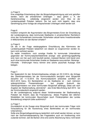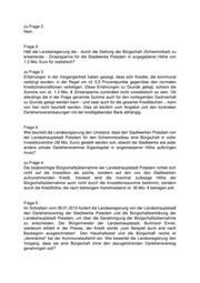 Landtag Brandenburg Drucksache 6/1306 6. Wahlperiode Antwort der Landesregierung auf die Kleine Anfrage 469 des Abgeordneten Steeven Bretz der CDU-Fraktion Drucksache 6/1026 Badneubau Am Brauhausberg in Potsdam Wortlaut der Kleinen Anfrage 469 vom 02.04.2015: Die Finanzierung des Schwimmbadneubaus am Brauhausberg ist weiterhin offen. Hinzu kommen widersprüchliche Aussagen des Oberbürgermeisters und des Stadtwerke-Chefs in der Presse. Während der Oberbürgermeister im Hauptausschuss der Stadtverordnetenversammlung vor wenigen Tagen eingeräumt haben soll, dass die Bürgschaft als Voraussetzung für die Kreditfinanzierung des Badneubaus benötigt werde, erklärt der Stadtwerke-Chef aktuell, die Bürgschaft werde lediglich zur Verbesserung der Zinskonditionen des Kredits gebraucht. Die Bürgschaft soll laut Medienberichterstattung auch nach dem Beschluss des Doppelhaushaltes der Landeshauptstadt Potsdam Ende Januar 2015 noch immer nicht zur Genehmigung an das Land weitergereicht worden sein. Ich frage daher die Landesregierung: 1. Welche Korrespondenz (mündlich/schriftlich) mit welchem Ergebnis gab es zwischen der Landesregierung und der Landeshauptstadt Potsdam seit dem 08.01.2015 (Schreiben der Landesregierung an die Landeshauptstadt Potsdam) bis heute? 2. Liegt der Landesregierung inzwischen ein Antrag auf Genehmigung der Bürgschaftsübernahme in Höhe von 36 Mio. Euro (Schwimmbad) plus 22 Mio. Euro (Infrastruktur) vor? 3. Hält die Landesregierung die - durch die Stellung der Bürgschaft (Schwimmbad) zu erwartende - Zinsersparnis für die Stadtwerke Potsdam in angegebener Höhe von 1,3 Mio. Euro für realistisch? 4. Wie beurteilt die Landesregierung den Umstand, dass den Stadtwerken Potsdam von der Landeshauptstadt Potsdam für den Schwimmbadbau eine Bürgschaft in voller Investitionshöhe (36 Mio. Euro) gestellt werden soll, obwohl die Stadtwerke wie jeder andere private Darlehensnehmer Eigenkapital in angemessener Höhe aufbringen muss?