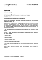 Landtag Brandenburg Drucksache 6/7259 6. Wahlperiode Antwort der Landesregierung auf die Kleine Anfrage Nr. 2921 des Abgeordneten Christoph Schulze (BVB/FREIE WÄHLER Gruppe) Drucksache 6/7110 Schadenersatzforderung des Zweckverbandes KMS Namens der Landesregierung beantwortet der Minister des Innern und für Kommunales die Kleine Anfrage wie folgt: Vorbemerkungen des Fragestellers: Nach dem Beschluss des Bundesverfassungsgerich- tes vom 12. November 2015, AZ 1 BVR 2961/14 und 1 BVR 3051/14 und der Folgen für die Aufgabenträger der Wasserversorgung um Land Brandenburg wurde bekannt, dass der Zweckverband KMS angeblich beschlossen hat, Schadenersatzansprüche beim Land Brandenburg anzumelden. 1. Hat der Zweckverband KMS Schadenersatzansprüche beim Land Brandenburg ange- meldet? zu Frage 1: Ja, der Zweckverband Komplexsanierung mittlerer Süden (KMS) hat Ansprü- che geltend gemacht. 2. Wenn ja, wann? 3. Wenn ja, bei wem? 4. Wenn ja, in welcher Höhe? 5. Wenn ja, auf welcher Rechtsgrundlage? 6. Wie ist der Bearbeitungsstand, wo kann Akteneinsicht zu diesem Vorgang genommen werden? zu den Fragen 2 bis 6: Es wird insoweit auf die Beantwortung der Kleinen Anfrage 2920 verwiesen. Eingegangen: 25.08.2017 / Ausgegeben: 30.08.2017