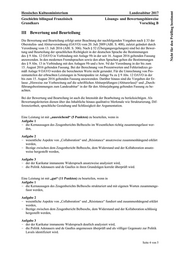 Nicht für den Prüfling bestimmt Hessisches Kultusministerium Landesabitur 2017 Geschichte bilingual Französisch Lösungs- und Bewertungshinweise Grundkurs Vorschlag B Seite 4 von 5III Bewertung und Beurteilung Die Bewertung und Beurteilung erfolgt unter Beachtung der nachfolgenden Vorgaben nach § 33 der Oberstufen- und Abiturverordnung (OAVO) vom 20. Juli 2009 (ABl. S. 408), zuletzt geändert durch Verordnung vom 13. Juli 2016 (ABl. S. 306). Nach § 52 (Übergangsregelungen) sind bei der Bewer- tung und Beurteilung der sprachlichen Richtigkeit in der deutschen Sprache die Bestimmungen des § 9 Abs. 12 OAVO in Verbindung mit Anlage 9b in der seit 16. August 2016 geltenden Fassung anzuwenden. In den modernen Fremdsprachen sowie den alten Sprachen gelten die Bestimmungen des § 9 Abs. 13 in Verbindung mit den Anlagen 9b und c bzw. 9d der Verordnung in der bis zum 15. August 2016 geltenden Fassung. Bei der Berechnung von Prozentwerten und Fehlerindizes ge- mäß Anlage 9 OAVO werden die berechneten Werte nicht gerundet. Für die Umrechnung von Pro- zentanteilen der erbrachten Leistungen in Notenpunkte ist Anlage 9a zu § 9 Abs. 12 OAVO in der bis zum 15. August 2016 geltenden Fassung anzuwenden. Darüber hinaus sind die Vorgaben der Er- lasse „Hinweise zur Vorbereitung auf die schriftlichen Abiturprüfungen (Abiturerlass)“ und „Durch- führungsbestimmungen zum Landesabitur“ in der für den Abiturjahrgang geltenden Fassung zu be- achten. Bei der Bewertung und Beurteilung ist auch die Intensität der Bearbeitung zu berücksichtigen. Als Bewertungskriterien dienen über das Inhaltliche hinaus qualitative Merkmale wie Strukturierung, Dif- ferenziertheit, sprachliche Gestaltung und Schlüssigkeit der Argumentation. Eine Leistung ist mit „ausreichend“ (5 Punkten) zu beurteilen, wenn in Aufgabe 1 – die Kernaussagen des Zeugenberichts Belbeochs im Wesentlichen richtig zusammengefasst wer- den, Aufgabe 2 – wesentliche Aspekte von „Collaboration“ und „Résistance“ ansatzweise zusammenhängend erklärt werden, – Bezüge zwischen dem Zeugenbericht Belbeochs, dem Widerstand und der Kollaboration ansatz- weise hergestellt werden, Aufgabe 3 – der der Karikatur immanente Widerspruch ansatzweise analysiert wird, – die Politik Adenauers und de Gaulles in ihren Grundzügen korrekt überprüft wird. Eine Leistung ist mit „gut“ (11 Punkten) zu beurteilen, wenn in Aufgabe 1 – die Kernaussagen des Zeugenberichts Belbeochs strukturiert und mit eigenen Worten zusammenge- fasst werden, Aufgabe 2 – wesentliche Aspekte von „Collaboration“ und „Résistance“ fundiert und zusammenhängend erklärt werden, – Bezüge zwischen dem Zeugenbericht Belbeochs, dem Widerstand und der Kollaboration schlüssig hergestellt werden, Aufgabe 3 – der der Karikatur immanente Widerspruch deutlich analysiert wird, – die Politik Adenauers und de Gaulles angemessen überprüft und als völliger Gegensatz zur Politik Lavals identifiziert wird.