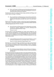 Drucksache 19/ 3009 19/3009 – 4– –4 – Deutscher DeutscherBundestag Bundestag––19. 19.Wahlperiode Wahlperiode Vorabfassung - wird durch die lektorierte Version ersetzt. 12. Gibt es nach Kenntnis der Bundesregierung Kontrollmöglichkeiten hinsicht- lich Nutzung und Löschung der Daten durch die Bundespolizei bei den ver- arbeitenden Stellen der Russischen Föderation? Die Russische Föderation ist Vertragsstaat der Konvention 108 des Europarates und daher völkerrechtlich zur Gewährleistung grundlegender Datenschutzgaran- tien verpflichtet. Insoweit bestehen geeignete datenschutzrechtliche Garantien. Im Übrigen wird auf die ergänzenden Regelungen der Datenübermittlung nach § 33 BPolG und auf die Antwort der Bundesregierung zu den Fragen 15 und 16 der Kleinen Anfrage der Fraktion BÜNDNIS 90/DIE GRÜNEN auf Bundestags- drucksache 19/1223 verwiesen. 13. Über wie viele Personen sind nach Kenntnis der Bundesregierung Angaben in der Datei Gewalttäter Sport zu bestehenden Auflagen bzw. Verboten bzw. Hinweisen gespeichert, aufgeschlüsselt nach folgenden Kategorien: a) Beförderungsausschluss in Zügen der DB AG oder anderer Eisenbahnver- kehrsunternehmen, b) Bundesweites Hausverbot für Bahnhöfe der DB AG, c) Bundesweit wirksames Stadionverbot, d) Gefährderansprache, e) Pass- und Personalausweisbeschränkung, f) Ausreiseuntersagung, g) Meldeauflage, h) Betretungs- und Aufenthaltsverbot, i) Gewahrsam, j) Sonstige Maßnahme? Es sind insgesamt zu 10 353 Personen Auflagen und/oder Hinweise und/oder Verbote gespeichert. In den angefragten Kategorien a) bis j) sind nachfolgende Personen gespeichert: zu a): 42 Personen zu b): 33 Personen zu c): 1 682 Personen zu d): 73 Personen zu e): Zu dieser Kategorie sind keine Daten gespeichert. zu f): 3 Personen zu g): 3 Personen zu h): 61 Personen zu i): Zu dieser Kategorie sind keine Daten gespeichert. zu j): 238 Personen.