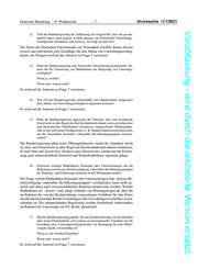Drucksache 18/12621 –6– Deutscher Bundestag – 18. Wahlperiode Vorabfassung - wird durch die lektorierte Version ersetzt. Familien mit Migrationshintergrund richtete. Werdende Eltern und junge Fa- milien aus sozial benachteiligten Stadtvierteln wurden in der Gestaltung eines gesunden Wohnumfeldes für ihre neugeborenen Kinder unterstützt und ent- sprechende Beratungsleistungen angeboten. Die Deutsche Umwelthilfe (DUH) hat u. a. unter dem Titel „Umweltgerechtig- keit durch Partizipation “ (2012 bis 2014) in fünf Kommunen Projekte zur Teil- habe insbesondere von Kindern und Jugendlichen an städtischer Grünraumge- staltung in sozial benachteiligten Quartieren untersucht. Auf dieser Grundlage wurde eine Broschüre erstellt, die Hinweise für Kommunen sowie Bürgerinnen und Bürger zu sozial- und umweltgerechter Grünflächenplanung liefert. Im Projekt „Grün- und Freiflächen in der Sozialen Stadt“ (2014 bis 2016) hat die DUH drei Gebiete des Bund-Länder-Förderprogramms „Soziale-Stadt“ (Berlin-Schöneberger Norden, Hannover-Stöcken und Gladbeck-Brauck) für ihr umfassendes Engagement an der Schnittstelle von Ökologie und Sozialem ausgezeichnet. Nach drei Vor-Ort-Workshops fand in vier weiteren Städten eine Fortbildungsreihe zu beteiligungsorientierten Grünprojekten für kommu- nale Akteure, Quartiermanagementeinrichtungen und interessierte Bürgerin- nen und Bürger statt. Die DUH fertigt derzeit einen Handlungsleitfaden „Grün- Soziale Stadt“ mit zahlreichen Praxisbeispielen an. Der Schwerpunkt wird da- bei auf der Unterstützung des strategischen Vorgehen einer Kommune liegen, ein Quartier durch partizipative Maßnahmen im Grün- und Freiflächenbereich in sozialer, ökologischer und städtebaulicher Sicht positiv zu entwickeln. Eine besondere Rolle spielt dabei das städtebauliche Förderprogramm „Soziale Stadt“, auf dessen Besonderheiten im Rahmen der Handlungsanleitung einge- gangen wird. 8. Welche Bundesländer bzw. Kommunen neben Berlin haben nach Kenntnis der Bundesregierung bereits einen Umweltgerechtigkeitsatlas (oder Ver- gleichbares) bzw. erarbeiten momentan solch einen? Es wird auf die Antwort zu Frage 5 verwiesen. 9. Plant die Bundesregierung eine Unterstützung von planerisch-konzeptionel- len Ansätzen, wie sie etwa in Form des „Masterplans Umwelt und Gesund- heit“ NRW auf Landesebene oder des „Fachplans Gesundheit“ des Landes- zentrums Gesundheit NRW auf kommunaler Ebene bestehen? Es wird auf die Antworten zu den Fragen 4 und 7 verwiesen. 10. Erachtet die Bundesregierung solche konzeptionelle Arbeit durch die Bun- desländer bzw. Kommunen als sinnvoll, und wenn ja, wie unterstützt sie die Bundesländer dabei? Es wird auf die Antworten zu den Fragen 4 und 7 verwiesen. 11. Plant die Bundesregierung eine Unterstützung solcher konzeptioneller Ar- beit, z. B. bei der Erstellung eines Umweltgerechtigkeitsatlas oder eines Fachplans Gesundheit, durch die Länder oder kommunale Akteure? Wenn ja, wie? Wenn nein, warum nicht? Es wird auf die Antworten zu den Fragen 4 und 7 verwiesen.