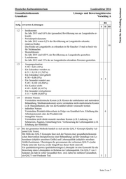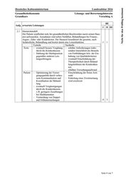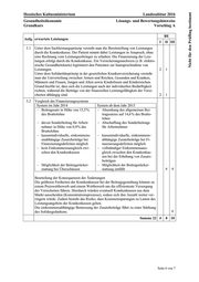 Nicht für den Prüfling bestimmt Hessisches Kultusministerium Landesabitur 2016 Gesundheitsökonomie Lösungs- und Bewertungshinweise Grundkurs Vorschlag A Seite 1 von 7I. Erläuterungen Aufgabenart materialgebundene Aufgabenstellung Voraussetzungen gemäß Lehrplan und Erlass „Hinweise zur Vorbereitung auf die schriftlichen Abiturprüfungen im Landesabitur 2016 im beruflichen Gymnasium (fachrichtungs-/schwer- punktbezogene Fächer)“ vom 27. Juni 2014 Aufgabe 1 basiert auf dem Kurshalbjahr Q3: „Public Health als Steuerungskonzept im Gesundheits- wesen und gesundheitsökonomische Analysemethoden“. Inhalte: Gesundheitsziele in Deutschland, Aufgaben und Ziele von Public Health, evidenzbasierte Medizin, Gesundheitsberichterstattung, Dise- ase-Management-Programme und entsprechende Organisationsformen, Formen gesundheitsökonomi- scher Evaluation, epidemiologische Kennzahlen. Aufgabe 2 und Aufgabe 3 beziehen sich auf das Kurshalbjahr Q1: „Aufbau und Funktion des deut- schen Gesundheitswesens“. Inhalte: Finanzierungsformen, Leistungen, aktuelle Probleme gesetzlicher und privater Krankenversicherung, aktuelle Reformen und Reformansätze, Institutionen des Gesund- heitswesens, Leistungs- und Finanzierungsbeziehungen sowie aktuelle Entwicklungen in der ambulan- ten Versorgung, der stationären Versorgung und der Arzneimittelversorgung. II. Lösungshinweise In den nachfolgenden Lösungshinweisen sind alle wesentlichen Gesichtspunkte, die bei der Bearbei- tung der einzelnen Aufgaben zu berücksichtigen sind, konkret genannt und diejenigen Lösungswege aufgezeigt, welche die Prüflinge erfahrungsgemäß einschlagen werden. Selbstverständlich sind jedoch Lösungswege, die von den vorgegebenen abweichen, aber als gleichwertig betrachtet werden können, ebenso zu akzeptieren. Aufg. erwartete Leistungen BE I II III 1.1 – Inzidenzrate = Anzahl der Neuerkrankungen in einer bestimmten Periode/ Anzahl der Personen, die in dieser Periode einem Krankheitsrisiko ausgesetzt waren (gesunde Bevölkerung) (in der Literatur wird im Nenner teilweise auch die Gesamtpopulation ange- setzt) – Rate der Stichtagsprävalenz = Anzahl aller erkrankten Menschen zu einem bestimmten Zeitpunkt/Gesamtpopulation zu diesem Zeitpunkt – Rate der Periodenprävalenz = Anzahl aller erkrankten Menschen in einem bestimmten Zeitraum/Gesamtpopulation in diesem Zeitraum – relatives Risiko = Inzidenz der exponierten (belasteten) Vergleichsgruppe/ Inzidenz der nicht exponierten (belasteten) Vergleichsgruppe – Mortalitätsrate = An zahl der in einem bestimmten Zeitraum an einer Krankheit verstorbenen Menschen/Gesamtpopulation in diesem Zeitraum – Letalitätsrate = Anzahl der in einem bestimmten Zeitraum an einer Krankheit verstorbenen Menschen/Anzahl der in einem bestimmten Zeitraum an der Krankheit erkrankten Menschen 6