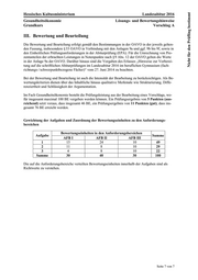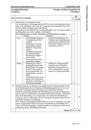 Nicht für den Prüfling bestimmt Hessisches Kultusministerium Landesabitur 2016 Gesundheitsökonomie Lösungs- und Bewertungshinweise Grundkurs Vorschlag A Seite 7 von 7III. Bewertung und Beurteilung Die Bewertung und Beurteilung erfolgt gemäß den Bestimmungen in der OAVO in der jeweils gelten- den Fassung, insbesondere §33 OAVO in Verbindung mit den Anlagen 9a und ggf. 9b bis 9f, sowie in den Einheitlichen Prüfungsanforderungen in der Abiturprüfung (EPA). Für die Umrechnung von Pro- zentanteilen der erbrachten Leistungen in Notenpunkte nach §9 Abs. 12 der OAVO gelten die Werte in der Anlage 9a der OAVO. Darüber hinaus sind die Vorgaben des Erlasses „Hinweise zur Vorberei- tung auf die schriftlichen Abiturprüfungen im Landesabitur 2016 im beruflichen Gymnasium (fach- richtungs-/schwerpunktbezogene Fächer)“ vom 27. Juni 2014 zu beachten. Bei der Bewertung und Beurteilung ist auch die Intensität der Bearbeitung zu berücksichtigen. Als Be- wertungskriterien dienen über das Inhaltliche hinaus qualitative Merkmale wie Strukturierung, Diffe- renziertheit und Schlüssigkeit der Argumentation. Im Fach Gesundheitsökonomie besteht die Prüfungsleistung aus der Bearbeitung eines Vorschlags, wo- für insgesamt maximal 100 BE vergeben werden können. Ein Prüfungsergebnis von 5 Punkten (aus- reichend) setzt voraus, dass insgesamt 46 BE, ein Prüfungsergebnis von 11 Punkten (gut), dass ins- gesamt 76 BE erreicht werden. Gewichtung der Aufgaben und Zuordnung der Bewertungseinheiten zu den Anforderungs- bereichen Aufgabe Bewertungseinheiten in den Anforderungsbereichen SummeAFB I AFB II AFB III 1 15 24 10 49 2 11 8 10 29 3 4 8 10 22 Summe 30 40 30 100 Die auf die Anforderungsbereiche verteilten Bewertungseinheiten innerhalb der Aufgaben sind als Richtwerte zu verstehen.