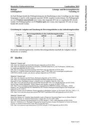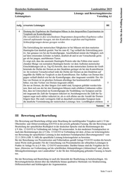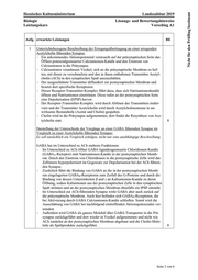 Nicht für den Prüfling bestimmt Hessisches Kultusministerium Landesabitur 2019 Biologie Lösungs- und Bewertungshinweise Leistungskurs Vorschlag A1 Seite 6 von 6Im Fach Biologie besteht die Prüfungsleistung aus der Bearbeitung je eines Vorschlags aus den Aufga- bengruppen A und B, wofür insgesamt maximal 100 BE vergeben werden können. Ein Prüfungsergeb- nis von 5 Punkten (ausreichend) setzt voraus, dass insgesamt 46% der zu vergebenden BE erreicht werden. Ein Prüfungsergebnis von 11 Punkten (gut) setzt voraus, dass insgesamt 76% der zu verge- benden BE erreicht werden. Gewichtung der Aufgaben und Zuordnung der Bewertungseinheiten zu den Anforderungsbereichen Aufgabe Bewertungseinheiten in den AnforderungsbereichenSumme AFB I AFB II AFB III 1 8 8 16 2 7 4 11 3 7 4 11 4 6 6 12 Summe 15 25 10 50 Die auf die Anforderungsbereiche verteilten Bewertungseinheiten innerhalb der Aufgaben sind als Richtwerte zu verstehen. IV Quellen Material 1 basiert auf: URL: https://de.wikipedia.org/wiki/GABA-Rezeptor (abgerufen am 02.01.2018). URL: https://fr.wikipedia.org/wiki/R%C3%A9cepteur_GABAB#/media/File:Le_r%C3%A9cepteur_GABAB_dans_ la_synapse.png (abgerufen am 02.01.2018). URL: http://n.neurology.org/content/neurology/78/8/578/F1.large.jpg (abgerufen am 02.01.2018). Hua Han et al.: GABAB receptor and absence epilepsy, figure 1, URL: https://www.researchgate.net/publication/ 229075859_GABAB_receptor_and_absence_epilepsy (abgerufen am 07.03.2018). Material 2 basiert auf: URL: https://de.wikipedia.org/wiki/Chorea_Huntington (abgerufen am 02.12.2017). URL: https://www.huntington-hilfe.de/Die-Huntington-Krankheit (abgerufen am 02.01.2018). Raymund AC Roos: Huntington's disease: a clinical review, in: Orphanet J Rare Dis. 2010; 5:40, URL: https://www.ncbi.nlm.nih.gov/pmc/articles/PMC3022767/pdf/1750-1172-5-40.pdf (abgerufen am 02.01.2018). Herwig Lange: Morbus Huntington - Klinik, Diagnose und Therapie, in: psycho 28 (2002), S. 482, URL: https://www.researchgate.net/profile/Herwig_Lange/publication/200029410_Morbus_Huntington_-_Klinik_ Diagnose_und_Therapie/links/06539337d0494b4952c76275/Morbus-Huntington-Klinik-Diagnose-und-Therapie.pdf (abgerufen am 02.12.2017). Montserrat Arrasate, Steven Finkbeiner: Protein aggregates in Huntington’s disease, in: Exp Neurol. 2012 Nov; 238(1): 1–11, URL: https://www.ncbi.nlm.nih.gov/pmc/articles/PMC3909772/pdf/nihms349961.pdf (abgerufen am 04.02.2018). Material 3 basiert auf: Reena Prity Murmu et al.: Dendritic Spine Instability Leads to Progressive Neocortical Spine Loss in a Mouse Model of Huntington's Disease, in: Journal of Neuroscience 7 August 2013, 33 (32) 12997-13009, URL: http://www.jneurosci.org/content/jneuro/33/32/12997.full.pdf, S. 12997-13004 (abgerufen am 06.01.2018). Spencer U. McKinstry et al.: Huntingtin Is Required for Normal Excitatory Synapse Development in Cortical and Striatal Circuits, in: Journal of Neuroscience 9 July 2014, 34 (28) 9455-9472, URL: http://www.jneurosci.org/content/jneuro/34/28/9455.full.pdf, S. 9455f (abgerufen am 06.01.2018).