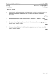 Hessisches Kultusministerium Landesabitur 2021 Biologie Thema und Aufgabenstellung Grundkurs Vorschlag A Seite 1 von 9 Hinweise für den Prüfling Bearbeitungszeit (insgesamt): 255 Minuten Auswahlverfahren Wählen Sie von den zwei vorliegenden Vorschlägen einen zur Bearbeitung aus. Der nicht ausgewählte Vorschlag wird 60 Minuten nach Beginn der Bearbeitungszeit von der Aufsicht führenden Lehrkraft eingesammelt. Erlaubte Hilfsmittel 1. ein Wörterbuch der deutschen Rechtschreibung 2. ein eingeführter Taschenrechner (Bei grafikfähigen Rechnern und Computeralgebrasystemen ist ein Reset durchzuführen.) 3. eine Liste der fachspezifischen Operatoren Sonstige Hinweise keine In jedem Fall vom Prüfling auszufüllen Name: Vorname: Prüferin/Prüfer: Datum: