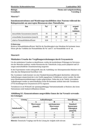 Hessisches Kultusministerium Landesabitur 2021 Biologie Thema und Aufgabenstellung Grundkurs Vorschlag A Seite 3 von 9 „Pontischer Honig“ 6 Beschreiben Sie das Zustandekommen des Ruhepotenzials an einer Nervenzelle. Erläutern Sie in diesem Zusammenhang die Bedeutung und die Funktion der Natrium-Kaliumpumpe. (Material 7) (17 BE) 7 Beschreiben und erklären Sie den Potenzialverlauf in Abbildung 8.2. (Material 6, 7 und 8) (22 BE) 8 Entwickeln Sie eine Hypothese, die die in Material 9 beschriebenen Untersuchungsergebnisse erklären könnte. (Material 8 und 9) (4 BE) 9 Entwickeln Sie eine Erklärung für die beobachteten Symptome nach dem Genuss von „Mad Honey“. (Material 6 und 8) (7 BE)