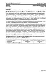 Hessisches Kultusministerium Landesabitur 2020 Biologie Thema und Aufgabenstellung Grundkurs Vorschlag A1 Seite 5 von 5Material 3 Die Wechselbeziehung zwischen Bienen und Blütenpflanzen – ein Wettbewerb? Viele Blütenpflanzen sind für ihre Fortpflanzung auf tierische Bestäuber angewiesen, wobei Bienen eine besonders wichtige Rolle einnehmen. Die Pflanzen haben vielfältige Strategien entwickelt, um Bestäuber anzulocken: Sie produzieren Nektar und haben vielfältige Düfte, Farben und Formen entwi- ckelt. Dadurch sind sie für bestäubende Insekten attraktiv und sichern die eigene Fortpflanzung, da die Bestäuber bei ihrer Nahrungssuche auch Pollen von Pflanze zu Pflanze verbreiten. Die Produktion des kohlenhydratreichen Nektars ist für Blütenpflanzen allerdings energieaufwendig. Die gesammelten und in den Bienenstock eingebrachten Honigreserven wiederum sind für die Bienen im Winter, wenn sie ihren Bienenstock nicht verlassen, die einzige Nahrungsquelle. Mit Hilfe einer Modellrechnung versuchten die Wissenschaftlerinnen und Wissenschaftler der Univer- sität von Sussex vorherzusagen, wie sich unterschiedliche Gehalte an Zucker und Koffein im Blüten- nektar auf die Honigreserven eines Bienenvolks auswirken könnten. Dabei sollte geprüft werden, in- wieweit Blütenpflanzen durch den Zusatz von Koffein den Zuckergehalt ihres Blütennektars verän- dern können, ohne dabei an Attraktivität für die Bienen einzubüßen. Zu diesem Zweck wurde in der Modellrechnung folgende Umgebung für die Bienen simuliert: Ein Teil der Pflanzen enthält Nektar mit Koffein in natürlich vorkommender Konzentration. Es wird angenommen, dass die Tanzaktivität der Bienen entsprechend der in Abbildung 2.2 dargestellten experimentellen Ergebnisse beeinflusst wird. Die Tabelle zeigt das Ergebnis einer solchen Modellrechnung. Möglicher Honigertrag eines Bienenvolks in Abhängigkeit von der Zusammensetzung des Blütennektars (Ergebnis einer Modellrechnung) Zusammensetzung des Blütennektars Zuckerlösung (c = 1 mol/l) ohne Koffein Zuckerlösung (c = 0,8 mol/l) mit Koffein Honigertrag des Bienenvolks [g/Tag] 100 86
