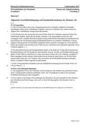 Hessisches Kultusministerium Landesabitur 2017 Wirtschaftslehre des Haushalts Thema und Aufgabenstellung Grundkurs Vorschlag A Seite 4 von 5Material 1 Allgemeine Geschäftsbedingungen mit Kundeninformationen der Hammer AG […] 2) Vertragsschluss 2.1 Die im Online-Shop oder in den Verkaufsstandorten des Verkäufers enthaltenen Produktbe- schreibungen stellen keine verbindlichen Angebote seitens des Verkäufers dar, sondern dienen zur Abgabe eines verbindlichen Antrags durch den Kunden. 5 2.2 Der Kunde kann den Antrag über das in den Online-Shop des Verkäufers integrierte Online-Be- stellformular abgeben. Dabei gibt der Kunde, nachdem er die ausgewählten Waren und/oder Leistungen in den virtuellen Warenkorb gelegt und den elektronischen Bestellprozess durchlaufen hat, durch Klicken des den Bestellvorgang abschließenden Buttons ein rechtlich verbindliches Vertrags- angebot in Bezug auf die im Warenkorb enthaltenen Waren und/oder Leistungen ab. Ferner kann der 10 Kunde das Angebot auch postalisch, per E-Mail, per Fax, telefonisch oder persönlich gegenüber einem Verkäufer abgeben. […] 2.9 Die Bestellabwicklung und Kontaktaufnahme finden in der Regel per E-Mail und automatisierter Bestellabwicklung statt. Der Kunde hat sicherzustellen, dass die von ihm zur Bestellabwicklung ange- gebene E-Mail-Adresse zutreffend ist, so dass unter dieser Adresse die vom Verkäufer versandten E- 15 Mails empfangen werden können. Insbesondere hat der Kunde bei dem Einsatz von SPAM-Filtern sicherzustellen, dass alle vom Verkäufer oder von diesem mit der Bestellabwicklung beauftragten Dritten versandten E-Mails zugestellt werden können. 2.10 Der Vertragsabschluss beinhaltet auch eine Haftpflichtversicherung für die bestellte Ware von 15€ pro Monat. […] 20 4) Preise und Zahlungsbedingungen 4.1 Die angegebenen Preise des Verkäufers sind Gesamtpreise und enthalten die gesetzliche Umsatz- steuer. Gegebenenfalls zusätzlich anfallende Liefer- und Versandkosten werden in der jeweiligen Produktbeschreibung gesondert angegeben. 4.2 Der Lieferer ist berechtigt, Preiserhöhungen des Herstellers, die sich innerhalb von drei Monaten 25 nach Abschluss des Kaufvertrages, aber noch vor der Lieferung ergeben, dem Kunden weiter zu berechnen. […] geändert nach http://www.sport-tiedje.de/de/Allgemeine-Geschaeftsbedinungen-6315 (abgerufen am 29.04.2015).