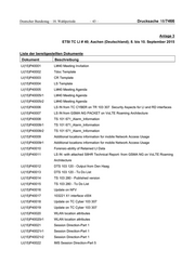 Deutscher Bundestag – 18. Wahlperiode – 43 – Drucksache 18/7466 Anlage 3 ETSI TC LI # 40; Aachen (Deutschland); 8. bis 10. September 2015 Liste der bereitgestellten Dokumente Dokument Beschreibung LI(15)P40001 LI#40 Meeting Invitation LI(15)P40002 Tdoc Template LI(15)P40003 CR Template LI(15)P40004 LS Template LI(15)P40005 LI#40 Meeting Agenda LI(15)P40005r1 LI#40 Meeting Agenda LI(15)P40005r2 LI#40 Meeting Agenda LI(15)P40006 LS IN from TC CYBER on TR 103 307 Security Aspects for LI and RD interfaces LI(15)P40007 LS IN from GSMA NG PACKET on VoLTE Roaming Architecture LI(15)P40008 TS 101 671_Alarm_Information LI(15)P40008r1 TS 101 671_Alarm_Information LI(15)P40008r2 TS 101 671_Alarm_Information LI(15)P40009 Additional locations information for mobile Network Access Usage LI(15)P40009r1 Additional locations information for mobile Network Access Usage LI(15)P40010 Forensic-ability of Retained LI Data LI(15)P40011 LS IN -with attached S8HR Technical Report- from GSMA NG on VoLTE Roaming Architecture LI(15)P40012 DTS 103 120 - Output from Den Haag LI(15)P40013 DTS 103 120 - To Do List LI(15)P40014 TS 103 280 - Published version LI(15)P40015 TS 103 280 - To Do List LI(15)P40016 Update on NFV LI(15)P40017 103221 X1 interface v004 LI(15)P40018 Update on TC Cyber 103 307 LI(15)P40019 Update on TC Cyber 103 307 LI(15)P40020 WLAN location attributes LI(15)P40020r1 WLAN location attributes LI(15)P40021 Session Direction-Part 1 LI(15)P40021r1 Session Direction-Part 1 LI(15)P40021r2 Session Direction-Part 1 LI(15)P40022 IMS Session Direction-Part 5