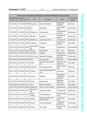 Drucksache 19/1477 – 46 – Deutscher Bundestag – 19. Wahlperiode Vorabfassung - wird durch die lektorierte Version ersetzt. Anlage 10 zu Parl Sts bei der Bundesministerin der Verteidigung Dr. Tauber 1980027-V28 vom 27. März 2018 Weitere personalwerbliche Maßnahmen außerhalb militärischer Liegenschaften Durchführungszeitraum Art der Maß- PLZ Ort Örtlichkeit Anlass von bis nahme Berufsfindungs- 12.04.2018 12.04.2018 30900 Wedemark Gymnasium Mellendorf Kofferstand markt 12.04.2018 12.04.2018 37327 Leinefelde Agentur für Arbeit Vortragsreihe Kofferstand Bad Franken- Kyffhäuser 14.04.2018 14.04.2018 06567 Schloßstraße InfoTruck hausen Berglauf Berufsinforma- 14.04.2018 14.04.2018 33330 Gütersloh Stadthalle Kofferstand tionsbörse Oberbayrische Amateur- 14.04.2018 15.04.2018 86956 Schongau Lechsporthalle Kofferstand boxmeister- schaften Studentische 18.04.2018 18.04.2018 84036 Landshut Fachhochschule Kofferstand Karrierebörse Berufsinforma- Teilnahme als 19.04.2018 19.04.2018 65189 Wiesbaden Martin-Niemöller-Schule tionsbörse Referent Rothenburg 19.04.2018 19.04.2018 91541 ob der Tau- Mehrzweckhalle Berufsinfotag Kofferstand ber Ausbildungs- 20.04.2018 20.04.2018 52249 Eschweiler Berufskolleg Kofferstand börse Ausbildungsin- 20.04.2018 20.04.2018 64807 Dieburg Alfred-Delp-Schule Info-Mobil fotag Berufsinforma- 20.04.2018 21.04.2018 37154 Northeim Berufsbildende Schule II Info-Mobil tionsmarkt 21.04.2018 21.04.2018 85221 Dachau Mehrzweckhalle Berufsinfotag Kofferstand 21.04.2018 21.04.2018 98617 Meiningen Innenstadt Stadtfest Info-Mobil Tanger- Elbdeichmara- 21.04.2018 22.04.2018 39585 Kirschallee 11 Info-Mobil münde thon 21.04.2018 22.04.2018 79589 Binzen Gewerbepark Frühlingsmarkt InfoTruck Motorradstern- 21.04.2018 22.04.2018 95326 Kulmbach Kulmbacher Brauerei KarriereMobil fahrt Ausbildungs- 24.04.2018 24.04.2018 52156 Monschau HiMO Inovationszentrum Kofferstand börse Deutscher An- 25.04.2018 27.04.2018 90471 Nürnberg Messezentrum ästhesiekon- Messestand gress Ausbildungs- 26.04.2018 26.04.2018 24143 Kiel Sport- u. Begegnungspark KarriereMobil Aktiv-Tag