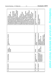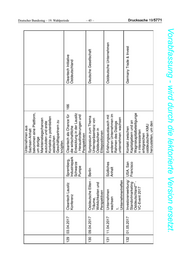 114 30.06.2016 2. Industriedialog Leipzig - Digitalisierung, Industrie Heringsdorfer Kreis Congress 4.0 (Zusammenschluss der Center Ostdeutschen Industrie- und Handelskammern), Industrieausschuss Innovation und Zukunft der Industrie und Handelskammer Leipzig, Plattform Industrie 4.0, Industrie und Handelskammer München und Oberbayern, Innovationsverbund Deutscher Bundestag – 19. Wahlperiode Maschinenbau Sachsen (VEMASinnovativ), Principal Industrial Engineering & Automation, Infineon Technologies Dresden GmbH, MetraLabs GmbH - Neue – 41 – Technologien und Systeme, Ilmenau, imk automotive GmbH Chemnitz (Strategische Entwicklung), General Chair RoboCup 2016, Leipziger Volkszeitung 115 08.07.2016 Fotografinnen der Görlitz Eröffnung Fotoausstellung Museum der Fotografie Görlitz DDR Görlitz e.V. 116 01.09.2016 Investorenwerbung/ Türkei, Hochrangige Vertreter der Invest in Mecklenburg- Standortmarketing Istanbul, Zielbranchen Vorpommern Ostdeutschland** - Izmir, Bursa Medizintechnik, Life Türkei 2016/2017 Science, Ernährungswirtschaft, Maschinenbau, Luftfahrt Drucksache 19/5771 Vorabfassung - wird durch die lektorierte Version ersetzt.
