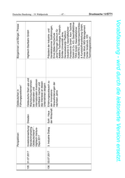 141 02.09.2017 Wismut-Erbe Bad Schlema Workshop zum Erhalt des Wismut GmbH, Deutsches kulturellen Wismut-Erbes Bergbau-Museum Bochum, Bundesanstalt für Geowissenschaften und Rohstoffe, Wirtschaftshistoriker- Berlin, Deutsches Historisches Museum Berlin, Haus der Geschichte Bonn (Zeitgeschichtliches Forum Leipzig), Leibniz-Gemeinschaft, Bundesarchiv Berlin, Bauhaus Deutscher Bundestag – 19. Wahlperiode Universität Weimar, TU BA Freiberg, Sächsisches Staatsministerium der Finanzen, Thüringer Finanzministerium 142 09.10.2017 Lichtfest Leipzig Leipzig Würdigung der Leipziger Leipzig Tourismus und Marketing Montagsdemo vom GmbH, künstlerische Leiterin des – 49 – 09.10.1989 Lichtfests 143 02.11.2017 Cleantech Berlin, BMWi Zukunftsfähige Ca. 100 Cleantech Initiative Jahreskonferenz Innovationen - Ostdeutschland energieeffiziente und energieerzeugende Wasserwirtschaft 144 07.11.2017 Unternehmen Magdeburg Erfahrungsaustausch mit 32 VDI Technologiezentrum GmbH wachsen anderen Unternehmen im Rahmen des Dialogs 4. Unternehmertreffen „Unternehmen: wachsen“ 145 11.12.2017 Investorenwerbung/ Österreich, Über bestehende und Wirtschaftsförderung Land Standortmarketing Wien und neue Partner Kontakte zu Brandenburg GmbH Ostdeutschland** - andere potentiellen Investoren Drucksache 19/5771 Vorabfassung - wird durch die lektorierte Version ersetzt.