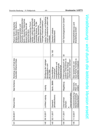 137 11.07.2017 Unternehmen Greifswald Erfahrungsaustausch mit Ostdeutsche Unternehmen wachsen anderen Unternehmen im Rahmen des Dialogs 2. „Unternehmen: wachsen“ Unternehmertreffen Drucksache 19/5771 138 19.07.2017 Zusammen Neues Berlin - bbw Netzwerktreffen ca. 100 SCHULEWIRTSCHAFT entwickeln Bildungswerk SCHULEWIRTSCHAFT Ostdeutschland, BMWi, der Wirtschaft Ostdeutschland 2017 SCHULEWIRTSCHAFT in Berlin und Deutschland, IW Köln – 48 – Brandenburg 139 29.08.2017 Unternehmen Jena Erfahrungsaustausch mit 30 Ostdeutsche Unternehmen wachsen anderen Unternehmen im 3. Rahmen des Dialogs Unternehmertreffen „Unternehmen: wachsen“ 140 01.09.2017 Lebenswelten Görlitz Eröffnung Fotoausstellung Museum der Fotografie Görlitz Görlitz e.V. Deutscher Bundestag – 19. Wahlperiode Vorabfassung - wird durch die lektorierte Version ersetzt.