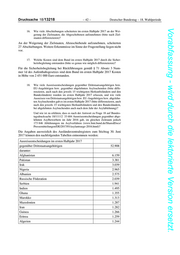 Deutscher Bundestag – 18. Wahlperiode – 47 – Drucksache 18/13218 Vorabfassung - wird durch die lektorierte Version ersetzt. Ausreisen im ersten Halbjahr 2017 von Unionsbürgern 141.792 davon: Baden-Württemberg 26.205 Bayern 29.620 Berlin 4.810 Brandenburg 2.029 Bremen 1.637 Hamburg 2.552 Hessen 15.288 Mecklenburg-Vorpommern 1.135 Niedersachsen 12.392 Nordrhein-Westfalen 28.497 Rheinland-Pfalz 6.724 Saarland 1.557 Sachsen 3.039 Sachsen-Anhalt 2.007 Schleswig-Holstein 2.181 Thüringen 2.119 Ausreisen im ersten Halbjahr 2017 von abgelehnten Asylbewerbern 23.934 darunter: Albanien 4.834 Serbien 3.175 Kosovo 2.197 Mazedonien 2.051 Pakistan 911 Bosnien-Herzegowina 906 Afghanistan 723 Irak 646 Algerien 612 Marokko 560 Georgien 499 Russische Föderation 443 Indien 433 Montenegro 361 Moldau (Republik) 347