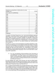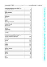 Drucksache 18/13218 – 48 – Deutscher Bundestag – 18. Wahlperiode Vorabfassung - wird durch die lektorierte Version ersetzt. Ausreisen im ersten Halbjahr 2017 von abgelehnten Asylbewerbern 23.934 davon: Baden-Württemberg 2.915 Bayern 2.799 Berlin 1.395 Brandenburg 535 Bremen 135 Hamburg 617 Hessen 1.283 Mecklenburg-Vorpommern 316 Niedersachsen 2.226 Nordrhein-Westfalen 7.235 Rheinland-Pfalz 1.170 Saarland 101 Sachsen 1.378 Sachsen-Anhalt 721 Schleswig-Holstein 559 Thüringen 549 Ausreisen von abgelehnten Asylbewerbern im ersten Halbjahr 2017 23.934 davon Jahr der Asylablehnung: vor 1991 113 1992 91 1993 160 1994 130 1995 105 1996 113 1997 110 1998 107 1999 113 2000 117 2001 124 2002 147 2003 182 2004 148 2005 104