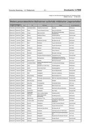 Drucksache 18/7858 – 42 – Deutscher Bundestag – 18. Wahlperiode Anlage 9 zu Parl Sts bei der Bundesministerin der Verteidigung Grübel 1880022-V139 vom 10. März 2016 Weitere personalwerbliche Maßnahmen außerhalb militärischer Liegenschaften Durchführungszeitraum von bis PLZ Ort Örtlichkeit Anlass Art der Maßnahme 24.06.2016 24.06.2016 25421 Pinneberg Mehrzweckhalle Big-Band der Bundeswehr Konzert Info-Truck 25.06.2016 25.06.2016 12527 Berlin Regattastrecke Grünau 19. Berlin Dragon Citycup Info-Mobil 25.06.2016 25.06.2016 25813 St. Peter-Ording Mehrzweckhalle Big-Band der Bundeswehr Konzert Info-Truck 25.06.2016 25.06.2016 31515 Wunstorf Gelände 16. Scharnhorst-Gedächtnis-Marsch Kofferstand 26.06.2016 26.06.2016 86836 Graben Wasserturm Bürgerfest Karrieremobil 27.06.2016 27.06.2016 41065 Mönchengladbach Marktplatz Check Inn Info-Truck 28.06.2016 28.06.2016 41747 Viersen Sparkassen-Vorplatz Check Inn Info-Truck 29.06.2016 29.06.2016 32756 Detmold Stadthalle Mädchenmesse Detmold Kofferstand 29.06.2016 29.06.2016 47799 Krefeld Agentur für Arbeit Check Inn Info-Truck 30.06.2016 30.06.2016 65385 Rüdesheim Konzertgelände Konzert der BigBand Info-Mobil Quelle: Bundeswehr, Stand: 1. März 2016