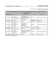 Deutscher Bundestag – 18. Wahlperiode – 41 – Drucksache 18/7858 Anlage 9 zu Parl Sts bei der Bundesministerin der Verteidigung Grübel 1880022-V139 vom 10. März 2016 Weitere personalwerbliche Maßnahmen außerhalb militärischer Liegenschaften Durchführungszeitraum von bis PLZ Ort Örtlichkeit Anlass Art der Maßnahme 07.06.2016 07.06.2016 37339 Leinefelde-Worbis Staatliches Gymnasium Sportfest Kofferstand 08.06.2016 08.06.2016 45130 Essen Land-/Amtsgericht Essen Messe der Behörden Kofferstand Mini Berufsinformationstag 09.06.2016 09.06.2016 49808 Lingen Mehrzweckhalle Kofferstand Gesamtschule 09.06.2016 10.06.2016 48431 Rheine Stadthalle Rheine Ausbildungsbörse Karrieremobil 10.06.2016 12.06.2016 04936 Schlieben Marktplatz Tag der Bundeswehr Info-Truck 11.06.2016 11.06.2016 46325 Borken Stadthalle Vennehof BU-Messe der AA Kofferstand 11.06.2016 11.06.2016 53111 Bonn Marktplatz Tag der Bundeswehr Info-Mobil 11.06.2016 11.06.2016 99084 Erfurt Marktplatz Tag der Bundeswehr Info-Truck 11.06.2016 12.06.2016 26629 Großefehn Gelände MKW Aktionstage Info-Mobil 11.06.2016 12.06.2016 37412 Hörden Gelände Harzer Keilerrun Kofferstand 12.06.2016 12.06.2016 21354 Bleckede Stadtgebiet Bleckeder Hafentage Info-Truck 12.06.2016 12.06.2016 48268 Greven Flughafen Münster-Osnabrück Flughafenfest 2016 Karrieremobil Jahrestagung der Deutschen 12.06.2016 15.06.2016 60327 Frankfurt Messegelände Kofferstand Gesellschaft für Neurochirugie 13.06.2016 16.06.2016 26384 Wilhelmshaven Gelände Woche der Schulen Info-Truck Staatlich Berufsbildende Schule 14.06.2016 14.06.2016 37327 Leinefelde-Worbis 15.Verkehrssicherheitstage Kofferstand Eichsfeld 15.06.2016 15.06.2016 49504 Lotte Sportpark am Lotter Kreuz Ausbildungsbörse Kofferstand 17.06.2016 17.06.2016 52349 Düren Arena Kreis Düren Ausbildungsbörse Info-Truck 17.06.2016 17.06.2016 89584 Ehingen Marktplatz Konzert Big Band Bw Karrieremobil 17.06.2016 17.06.2016 91154 Roth Stadtgebiet Nacht der Ausbildung Kofferstand 17.06.2016 19.06.2016 38118 Braunschweig Stadtgebiet Beachvolleyball Tour Kofferstand 18.06.2016 18.06.2016 06406 Bernburg Bernburger Sparkassenarena BISS Der Salzlandkreis bewegt sich Karrieremobil 18.06.2016 18.06.2016 36433 Bad Salzungen Marktplatz Stadtfest Karrieremobil 18.06.2016 18.06.2016 85077 Manching Firmengelände Familienfest Airbus Info-Truck 18.06.2016 19.06.2016 38550 Isenbüttel Stadtgebiet Beach-Soccer-Cup Info-Mobil 19.06.2016 19.06.2016 01067 Dresden DDV-Stadion Sächsische Zeitung Stadiontag Karrieremobil 19.06.2016 19.06.2016 97422 Schweinfurt Stadtgebiet River Race Karrieremobil Lutherstadt 20.06.2016 21.06.2016 06886 Arthur Lambert Stadion Fußballcup 2016 Info-Truck Wittenberg Dietrich-Bonhoeffer- 21.06.2016 21.06.2016 32756 Detmold Ausbildungsmesse Kofferstand Berufskolleg 21.06.2016 21.06.2016 38889 Blankenburg Freibad am Thie Harz-Cup der Gymnasien Kofferstand InfoMobilTour OSZ Konrad- 21.06.2016 23.06.2016 15234 Frankfurt Oder Schulgelände Info-Mobil Wachsmann 22.06.2016 22.02.2016 02625 Bautzen Stadtgebiet 6. DAK-Firmenlauf Bautzen Karrieremobil 22.06.2016 22.06.2016 06869 Coswig Schloßplatz Tag der Sicherheit 2016 Info-Truck 22.06.2016 22.06.2016 46485 Wesel Niederrheinhalle Wesel BU-Messe der AA Kofferstand 22.06.2016 22.06.2016 59939 Olsberg Stadthalle TOP Nachwuchs für TOP-Firmen Kofferstand Gelöbnis Panzergrenadierbattaillon 22.06.2016 23.06.2016 19053 Schwerin Marktplatz Info-Truck 401 23.06.2016 23.06.2016 30159 Hannover Stadtgebiet Big-Band der Bundeswehr Konzert Info-Truck 23.06.2016 26.06.2016 01067 Dresden Altmarkt Dresden Dresden Beach Karrieremobil 23.06.2016 27.06.2016 37083 Göttingen Stadtgebiet Erlebnisturnfest Göttingen Info-Truck