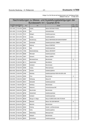 Deutscher Bundestag – 18. Wahlperiode – 45 – Drucksache 18/7858 Anlage 12 zu Parl Sts bei der Bundesministerin der Verteidigung Grübel 1880022-V139 vom 10. März 2016 Nachmeldungen zu Messe- und Ausstellungsbeteiligungen der Bundeswehr im I. Quartal 2016 Durchführungszeitraum Info- Info- PLZ Ort Anlass von bis mobil truck 14.01.2016 17.01.2016 04356 Leipzig Messe PARTNER PFERD 16.01.2016 17.01.2016 24106 Kiel Hochzeitsmesse 21.01.2016 21.01.2016 70191 Stuttgart Ausbildungsmesse 23.01.2016 23.01.2016 04103 Leipzig Ausbildungsbörse 23.01.2016 23.01.2016 16225 Brandenburg Messe EBERSWALDER BERUFEMARKT 23.01.2016 23.01.2016 17491 Greifswald Ausbildungsmesse JOBBEX 23.01.2016 23.01.2016 35037 Marburg Messe KOMPASS 23.01.2016 23.01.2016 95100 Selb Ausbildungsmesse 28.01.2016 28.01.2016 17036 Neubrandenburg Messe JOB-NIGHT 28.01.2016 28.01.2016 55286 Wörrstadt Ausbildungsmesse 30.01.2016 30.01.2016 19057 Schwerin Messe JUMPIN 01.02.2016 01.02.2016 54470 Bernkastel-Kues Berufsmesse X 01.02.2016 01.02.2016 66113 Saarbrücken Berufsbörse 02.02.2016 02.02.2016 08209 Auerbach Berufsmesse 05.02.2016 07.02.2016 04356 Leipzig Motorradmesse 06.02.2016 06.02.2016 04758 Oschatz Ausbildungsbörse 10.02.2016 10.02.2016 31582 Nienburg Ausbildungsmesse RAHN AN DEN JOB 12.02.2016 12.02.2016 54595 Prüm Berufsmesse X 13.02.2016 13.02.2016 24837 Schleswig Messe AA 13.02.2016 13.02.2016 29410 Salzwedel Ausbildungsmesse 17.02.2016 17.02.2016 22179 Hamburg Berufsmesse 18.02.2016 18.02.2016 19439 Stralsund Hochschulmesse BIZ 18.02.2016 18.02.2016 24536 Neumünster Berufsmesse 18.02.2016 18.02.2016 68766 Hockenheim Ausbildungsmesse 19.02.2016 19.02.2016 66280 Sulzbach Ausbildungsmesse 20.02.2016 20.02.2016 88239 Wangen im Allgäu Messe AUSBILDUNG UND STUDIUM 23.02.2016 23.02.2016 69168 Wiesloch Messe TAG DER BERUFE X 24.02.2016 24.02.2016 81541 München Berufemesse 24.02.2016 24.02.2016 94060 Pocking Studien- und Berufemesse 25.02.2016 25.02.2016 07768 Kahla Ausbildungsbörse 27.02.2016 27.02.2016 35435 Wettenberg Bildungsmesse 27.02.2016 27.02.2016 63768 Hösbach Berufemesse 27.02.2016 27.02.2016 92676 Eschenbach Ausbildungsmesse