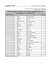 Drucksache 18/7858 – 46 – Deutscher Bundestag – 18. Wahlperiode Anlage 12 zu Parl Sts bei der Bundesministerin der Verteidigung Grübel 1880022-V139 vom 10. März 2016 Nachmeldungen zu Messe- und Ausstellungsbeteiligungen der Bundeswehr im I. Quartal 2016 Durchführungszeitraum Info- Info- PLZ Ort Anlass von bis mobil truck 02.03.2016 02.03.2016 08412 Werdau Berufsorientierungsmesse 02.03.2016 02.03.2016 69126 Heidelberg Messe RACE TO FUTURE 04.03.2016 04.03.2016 68163 Mannheim Messe AHA! 04.03.2016 05.03.2016 78056 Villingen-Schwenningen Messe JOBS FOR FUTURE 05.03.2016 05.03.2016 04105 Leipzig Messe STUZUBI 05.03.2016 05.03.2016 99974 Mühlhausen Firmenkontaktmesse 05.03.2016 06.03.2016 01968 Senftenberg Frühlingsmesse 05.03.2016 06.03.2016 27318 Hoya Baumesse X 09.03.2016 09.03.2016 08112 Wilkau-Haßlau Berufsmesse 09.03.2016 09.03.2016 61231 Bad Nauheim Ausbildungsbörse 09.03.2016 09.03.2016 66763 Dillingen Messe STUDIUM UND BERUF 09.03.2016 09.03.2016 71665 Vaihingen Ausbildungsmesse 10.03.2016 12.03.2016 68161 Mannheim Messe VDI RECRUITING TAG 11.03.2016 11.03.2016 73430 Aalen Ausbildungsmesse Ostwürttemberg 11.03.2016 11.03.2016 74523 Schwäbisch Hall Bildungsmesse 11.03.2016 12.03.2016 71522 Waiblingen Messe FOKUS BERUF 12.03.2016 12.03.2016 84307 Eggenfelden Ausbildungsmesse BERUFSWAHL ROTTAL-INN 12.03.2016 12.03.2016 77933 Lahr - Sulz Messe BERUFE & CO X 14.03.2016 14.03.206 80933 München Studienmesse 16.03.2016 16.03.2016 14480 Potsdam Messe JOBINALE X 16.03.2016 16.03.2016 31192 Lamspringe Jobmesse 16.03.2016 16.03.2016 96142 Hollfeld Ausbildungsmesse 17.03.2016 17.03.2016 79539 Lörrach Messe CULT 23.03.2016 23.03.2016 08289 Neustädtel Berufsmesse 23.03.2016 23.03.2016 66740 Saarlouis Berufsmesse Quelle: Bundeswehr, Stand: 1. März 2016