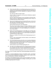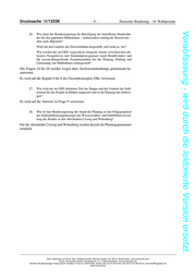 Drucksache 18/13336 –8– Deutscher Bundestag – 18. Wahlperiode Vorabfassung - wird durch die lektorierte Version ersetzt. 26. Wie plant die Bundesregierung die Beteiligung der betroffenen Bundeslän- der bei den geplanten Maßnahmen – insbesondere entlang der Reststrecke – aber auch allgemein? Wird mit den Ländern das Einvernehmen hergestellt, und wenn ja, wie? Wie werden der im GKE vorgesehene integrale Ansatz zwischen den sek- toralen Perspektiven und Zuständigkeitsgrenzen (auch Bund/Länder) und die ressort-übergreifende Zusammenarbeit bei der Planung, Prüfung und Umsetzung von Maßnahmen sichergestellt? Die Fragen 24 bis 26 werden wegen ihres Sachzusammenhangs gemeinsam be- antwortet. Es wird auf die Kapitel 4 bis 6 des Gesamtkonzeptes Elbe verwiesen. 27. Wie wird das im GKE definierte Ziel des Stopps und der Umkehr der Sohl- erosion für das Projekt in Klöden umgesetzt und in die Planung mit einbezo- gen? Es wird auf die Antwort zu Frage 9 verwiesen. 28. Wie ist laut Bundesregierung der Stand der Planung zu den Folgeprojekten des Sohlstabilisierungskonzepts der Wasserstraßen- und Schifffahrtsverwal- tung des Bundes in den Abschnitten Coswig und Wittenberg? Für die Abschnitte Coswig und Wittenberg werden derzeit die Planungsparameter ermittelt. Satz: Satzweiss.com Print, Web, Software GmbH, Mainzer Straße 116, 66121 Saarbrücken, www.satzweiss.com Druck: Printsystem GmbH, Schafwäsche 1-3, 71296 Heimsheim, www.printsystem.de Vertrieb: Bundesanzeiger Verlag GmbH, Postfach 10 05 34, 50445 Köln, Telefon (02 21) 97 66 83 40, Fax (02 21) 97 66 83 44, www.betrifft-gesetze.de ISSN 0722-8333