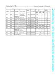 Drucksache 19/6184 – 10 – Deutscher Bundestag – 19. Wahlperiode Vorabfassung - wird durch die lektorierte Version ersetzt. Fördersummen in Anzahl Ge- Förder- Euro flüchteter Projektort Bundesland Projektträger Titel des Projekts Hochschultyp 2016 2017 2018 zeitraum 2016 2017 (IST) (IST) (Soll) Integra-Projekt der Evangelische Berlin Berlin Evangelischen 2016 Fachhochschule 11.340 7 Hochschule Berlin Hochschule Berlin Hochschule für Angebot von Vor- und Berlin Berlin Wirtschaft und 2016 Fachhochschule 29.400 28 Brückenkursen Recht Berlin Humboldt- Uni- Sprachintensivkurse Berlin Berlin 2016 Universität 237.720 125 versität zu Berlin Deutsch Universität der Interkulturelles Training Berlin Berlin 2016 Kunsthochschule 5.040 14 Künste Berlin für Geflüchtete Alice Salomon ASH Pre-Study Pro- Berlin Berlin 2016 Fachhochschule 10.080 18 Hochschule Berlin gramm Technische Uni- Vorbereitungskurse auf Berlin Berlin 2016-2019 Studienkolleg 291.900 410.340 420.420 109 222 versität Berlin MINT- Studiengänge Freie Universität Propädeutika im Berlin Berlin 2016-2019 Studienkolleg 159.600 84.000 94.500 101 32 Berlin Studienkolleg Deutsch- Humboldt- Uni- Berlin Berlin sprachkurse und 2017-2018 Universität 327.600 301.140 173 versität zu Berlin Propädeutika Universität der Interkulturelles Training Berlin Berlin 2017-2018 Kunsthochschule 9.660 15.120 23 Künste Berlin für Geflüchtete Beuth Hochschule Refugees@Beuth_Inte- Berlin Berlin 2017-2018 Fachhochschule 105.000 77.700 50 für Technik Berlin gra