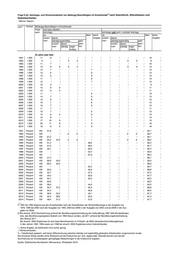1) Frage 9 (b): Samstags- und Wochenendarbeit von abhängig Beschäftigten im Einzelhandel nach Geschlecht, Altersklassen und Gebietseinheiten - Männer: Berlin und Brandenburg - 2) Einheit Abhängig Beschäftigte im Einzelhandel Jahr Insge- und zwar arbeiten … samt samstags samstags und sonn- und/oder feiertags Ja Nein keine Ja Nein keine zusam- davon Angabe zusam- davon Angabe men ständig/regelmäßig gele- men ständig/regelmäßig gele- zusam- davon gent- zusam- davon gent- men ständig regel- lich men ständig regel- lich mäßig mäßig 55 Jahre oder älter 1991 1.000 / / / / / / / / / / / / / / / 1992 1.000 / / / X X / / - / / X X - / - 1993 1.000 / / / / / / / - / / / - - / - 1994 1.000 6 / / X X / / - - - X X - 6 - 1995 1.000 / / / / / / / - / / - / / / - 1996 1.000 7 / / / / / / - / / / - / 7 - 1997 1.000 5 / / / / / / - / - - - / / - 1998 1.000 6 / / / / / / - / - - - / 6 - 1999 1.000 7 / / / / / / - / / - / / 6 - 2000 1.000 7 5 / / / / / - / / / - / 6 - 2001 1.000 6 / / / / / / - / / - / / 6 - 2002 1.000 / / / / / / / - / - - - / / - 2003 1.000 / / / / / / / - - - - - - / - 2004 1.000 / / / / / / / - / - - - / / - 2005 1.000 / / / / / / / - - - - - - / - 2006 1.000 / / / / / / / - / / / / - / - 2007 1.000 6 / / / / / / - / - - - / / - 2008 1.000 6 / / / / / / - / / / / / 5 - 2009 1.000 5 / / / / / / - / / - / - / - 2010 1.000 5 / / / / / / - / / / / / / - 2011 1.000 / / / / / / / - / / - / - / - 2012 1.000 6 / / / / / / - / / / / / 5 - 2013 1.000 6 / / / / / / - / / / / / 5 - 2014 1.000 8 / / / / / / - / / - / / 7 - 1991 Prozent / / / / / / / / / / / / / / / 1992 Prozent / / / X X / / - / / X X - / - 1993 Prozent / / / / / / / - / / / - - / - 1994 Prozent 100 / / X X / / - - - X X - 100,0 - 1995 Prozent / / / / / / / - / / - / / / - 1996 Prozent 100 / / / / / / - / / / - / 92,2 - 1997 Prozent 100 / / / / / / - / - - - / / - 1998 Prozent 100 / / / / / / - / - - - / 91,5 - 1999 Prozent 100 / / / / / / - / / - / / 92,2 - 2000 Prozent 100 76,0 / / / / / - / / / - / 78,7 - 2001 Prozent 100 / / / / / / - / / - / / 85,1 - 2002 Prozent / / / / / / / - / - - - / / - 2003 Prozent / / / / / / / - - - - - - / - 2004 Prozent / / / / / / / - / - - - / / - 2005 Prozent / / / / / / / - - - - - - / - 2006 Prozent / / / / / / / - / / / / - / - 2007 Prozent 100 / / / / / / - / - - - / / - 2008 Prozent 100 / / / / / / - / / / / / 92,0 - 2009 Prozent 100 / / / / / / - / / - / - / - 2010 Prozent 100 / / / / / / - / / / / / / - 2011 Prozent / / / / / / / - / / - / - / - 2012 Prozent 100 / / / / / / - / / / / / 88,7 - 2013 Prozent 100 / / / / / / - / / / / / 91,1 - 2014 Prozent 100 / / / / / / - / / - / / 89,3 - ___ 1) 1991 bis 1994 Abgrenzung des Einzelhandels nach der Klassifikation der Wirtschaftszweige in der Ausgabe von 1979, 1995 bis 2002 nach der Ausgabe von 1993, 2003 bis 2008 in der Ausgabe von 2003 und ab 2009 in der Aus- gabe von 2008. 2) Bis einschl. 2010 Hochrechnung anhand der Bevölkerungsfortschreibung der Volkszählung 1987 (Alte Bundesländer) bzw. des Bevölkerungsregisters Statistik von 1990 (Neue Länder), ab 2011 anhand der Bevölkerungsfortschreibung des Zensus 2011. Bis einschl. 2004 Ergebnisse für eine feste Berichtswoche im Frühjahr; ab 2005 Jahresdurchschnittsergebnisse. In den Jahren 1992, 1994 sowie von 1996 bis einschl. 2004 Ergebnisse einer Unterstichprobe. / = Keine Angabe, da Zahlenwert nicht sicher genug. = Nichtsvorhanden. X = Tabellenfach gesperrt, weil keine Differenzierung zwischen ständig und regelmäßig geleiseten Arbeitszeiten vorgenommen wurde. Die einzelnen Werte werden ohne Rücksicht auf die Endsumme auf- bzw. abgerundet. Deshalb können sich bei der Summierung von Einzelangaben geringfügige Abweichungen in der Endsumme ergeben. Quelle: Statistisches Bundesamt: Mikrozensus, Wiesbaden 2015.