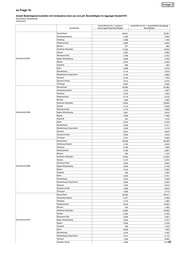 zu Frage 16: Tabelle ???: Anzahl Bedarfsgemeinschaften mit mindestens einen soz.vers.pfl. Beschäftigten im Aggregat Handel/KFZ Deutschland, Bundesländer Jahreswerte Anzahl BG mit min. 1 sozialver- Anzahl BG mit min. 1 ausschließlich geringfügig Bundesland sicherungspflichtig Beschäftigten Beschäftigten 1 2 Sachsen-Anhalt 4.800 3.944 Thüringen 3.469 2.387 Quelle: Bundesagentur für Arbeit 30