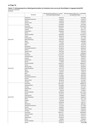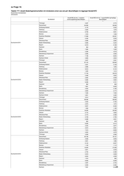 zu Frage 16: Tabelle ??: Zahlungsansprüche an Bedarfsgemeinschaften mit mindestens einen soz.vers.pfl. Beschäftigten im Aggregat Handel/KFZ Deutschland, Bundesländer Jahreswerte Zahlungsansprüche an BG mit min. 1 sozialver- Zahlungsansprüche an BG mit min. 1 ausschließlich Bundesland sicherungspflichtig Beschäftigten geringfügig Beschäftigten 1 2 Deutschland 593.976.705 808.075.494 Schleswig-Holstein 23.373.059 30.162.379 Hamburg 20.623.795 19.939.111 Niedersachsen 62.455.469 87.793.859 Bremen 7.094.682 10.408.569 Nordrhein-Westfalen 116.739.834 209.192.263 Hessen 36.730.765 49.664.146 Rheinland-Pfalz 20.329.316 27.222.721 Summe 2007 Baden-Württemberg 42.084.317 48.191.203 Bayern 45.558.509 52.532.197 Saarland 6.444.321 9.738.898 Berlin 48.805.721 62.227.179 Brandenburg 32.275.723 33.767.103 Mecklenburg-Vorpommern 25.612.333 25.832.986 Sachsen 50.288.935 71.941.921 Sachsen-Anhalt 31.801.138 39.794.274 Thüringen 23.758.789 29.666.684 Deutschland 599.393.119 895.394.674 Schleswig-Holstein 24.181.975 33.117.629 Hamburg 22.708.442 20.926.343 Niedersachsen 66.035.852 97.064.825 Bremen 7.384.232 11.496.420 Nordrhein-Westfalen 121.516.492 229.099.338 Hessen 37.354.932 54.854.234 Rheinland-Pfalz 20.341.608 29.278.642 Summe 2008 Baden-Württemberg 42.014.006 50.046.084 Bayern 44.815.699 53.285.275 Saarland 6.505.945 10.001.448 Berlin 51.446.485 71.707.922 Brandenburg 30.717.493 39.116.182 Mecklenburg-Vorpommern 23.703.607 30.035.882 Sachsen 48.159.953 83.747.605 Sachsen-Anhalt 30.094.527 48.297.968 Thüringen 22.411.871 33.318.879 Deutschland 601.705.251 949.063.539 Schleswig-Holstein 22.751.376 34.022.956 Hamburg 23.915.761 21.599.937 Niedersachsen 65.619.233 102.315.224 Bremen 7.250.735 12.684.931 Nordrhein-Westfalen 124.938.577 243.249.020 Hessen 39.857.971 58.917.238 Rheinland-Pfalz 20.407.807 30.060.893 Summe 2009 Baden-Württemberg 42.618.511 55.082.193 Bayern 46.204.970 55.440.439 Saarland 6.690.557 10.400.495 Berlin 52.653.077 76.400.952 Brandenburg 28.896.214 43.952.193 Mecklenburg-Vorpommern 22.360.179 30.918.131 Sachsen 46.531.726 88.458.301 Sachsen-Anhalt 29.655.919 50.630.536 Thüringen 21.352.637 34.930.101 Deutschland 592.987.037 998.177.181 Schleswig-Holstein 22.160.406 35.208.029 Hamburg 24.091.811 22.662.631 Niedersachsen 63.168.133 107.656.549 Bremen 7.366.487 14.256.798 Nordrhein-Westfalen 127.274.916 262.455.047 Hessen 40.661.910 59.355.154 Rheinland-Pfalz 20.106.174 31.165.247 Summe 2010 Baden-Württemberg 42.560.585 61.723.365 Bayern 45.339.605 57.767.732 Saarland 6.692.175 10.182.416 Berlin 53.721.907 83.617.37231