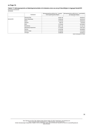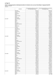 zu Frage 16: Tabelle ??: Zahlungsansprüche an Bedarfsgemeinschaften mit mindestens einen soz.vers.pfl. Beschäftigten im Aggregat Handel/KFZ Deutschland, Bundesländer Jahreswerte Zahlungsansprüche an BG mit min. 1 sozialver- Zahlungsansprüche an BG mit min. 1 ausschließlich Bundesland sicherungspflichtig Beschäftigten geringfügig Beschäftigten 1 2 Rheinland-Pfalz 20.091.193 26.203.915 Summe 2014 Baden-Württemberg 43.830.249 50.676.576 Bayern 47.237.053 46.895.453 Saarland 7.283.754 9.442.209 Berlin 72.734.820 69.765.853 Brandenburg 28.071.146 37.165.176 Mecklenburg-Vorpommern 21.312.939 23.941.284 Sachsen 42.444.582 60.558.856 Sachsen-Anhalt 29.169.646 37.819.630 Thüringen 20.688.585 22.556.974 Quelle: Bundesagentur für Arbeit 33 Satz: Satzweiss.com Print, Web, Software GmbH, Mainzer Straße 116, 66121 Saarbrücken, www.satzweiss.com Druck: Printsystem GmbH, Schafwäsche 1-3, 71296 Heimsheim, www.printsystem.de Vertrieb: Bundesanzeiger Verlag GmbH, Postfach 10 05 34, 50445 Köln, Telefon (02 21) 97 66 83 40, Fax (02 21) 97 66 83 44, www.betrifft-gesetze.de ISSN 0722-8333