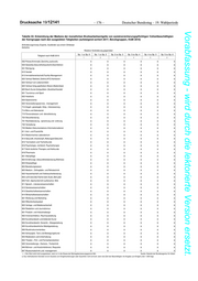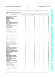 Deutscher Bundestag – 19. Wahlperiode – 173 – Drucksache 19/12141 Vorabfassung - wird durch die lektorierte Version ersetzt. Tabelle 33: Entwicklung der Mediane der monatlichen Bruttoarbeitsentgelte von sozialversicherungspflichtigen Vollzeitbeschäftigten der Kerngruppe nach den ausgeübten Tätigkeiten (aufsteigend sortiert 2017, Berufsgruppen, KldB 2010) Anforderungsniveau Experte, Ausländer aus einem Drittstaat Zeitreihe 31.12.2012 31.12.2013 31.12.2014 31.12.2015 31.12.2016 31.12.2017 Tätigkeit nach KldB 2010 Median in Euro 1 2 3 4 5 6 292 Lebensmittel- u. Genussmittelherstellung X X X X X X 293 Speisenzubereitung X X X X X X 312 Vermessung und Kartografie X X X X X X 321 Hochbau X X X X X X 322 Tiefbau X X X X X X 331 Bodenverlegung X X X X X X 332 Maler.,Stuckat.,Bauwerksabd,Bautenschutz X X X X X X 333 Aus-,Trockenbau.Iso.Zimmer.Glas.Roll.bau X X X X X X 341 Gebäudetechnik X X X X X X 342 Klempnerei,Sanitär,Heizung,Klimatechnik X X X X X X 343 Ver- und Entsorgung X X X X X X 411 Mathematik und Statistik X X X X X X 413 Chemie X X X X X X 421 Geologie, Geografie und Meteorologie X X X X X X 422 Umweltschutztechnik X X X X X X 423 Umweltmanagement und -beratung X X X X X X 433 IT-Netzwerkt.,-Koord.,-Administr.,-Orga. X X X X X X 511 Tech.Betrieb Eisenb.,Luft,Schiffsverkehr X X X X X X 512 Überwachung,WartungVerkehrsinfrastruktur X X X X X X 513 Lagerwirt.,Post,Zustellung,Güterumschlag X X X X X X 514 Servicekräfte im Personenverkehr X X X X X X 515 Überwachung u. Steuerung Verkehrsbetrieb X X X X X X 521 Fahrzeugführung im Straßenverkehr X X X X X X 522 Fahrzeugführung im Eisenbahnverkehr X X X X X X 523 Fahrzeugführung im Flugverkehr X X X X X X 524 Fahrzeugführung im Schiffsverkehr X X X X X X 525 Bau- und Transportgeräteführung X X X X X X 531 Obj.-,Pers.-,Brandschutz,Arbeitssicherh. X X X X X X 532 Polizei,Kriminald.,Gerichts,Justizvollz. X X X X X X 533 Gewerbe,Gesundheitsaufsicht,Desinfektion X X X X X X 541 Reinigung X X X X X X 612 Handel X X X X X X 613 Immobilienwirtschaft,Facility-Management X X X X X X 622 Verkauf Bekleid.,Elektro,KFZ,Hartwaren X X X X X X 623 Verkauf von Lebensmitteln X X X X X X 624 Verkauf drog.apotheken.Waren,Medizinbed. X X X X X X 625 Buch-Kunst-Antiquitäten-,Musikfachhandel X X X X X X 631 Tourismus und Sport X X X X X X 632 Hotellerie X X X X X X 633 Gastronomie X X X X X X 634 Veranstaltungsservice, -management X X X X X X 712 Angeh. gesetzgeb. Körp., Interessenorg. X X X X X X 714 Büro und Sekretariat X X X X X X 715 Personalwesen und -dienstleistung X X X X X X 723 Steuerberatung X X X X X X 731 Rechtsberatung, -sprechung und -ordnung X X X X X X 732 Verwaltung X X X X X X 733 Medien-Dokumentations-Informationsdienst X X X X X X 811 Arzt- und Praxishilfe X X X X X X 812 Medizinisches Laboratorium X X X X X X 813 Gesundh.,Krankenpfl.,Rettungsd.Geburtsh. X X X X X X 815 Tiermedizin und Tierheilkunde X X X X X X 816 Psychologie, nichtärztl. Psychotherapie X X X X X X 817 Nicht ärztliche Therapie und Heilkunde X X X X X X 818 Pharmazie X X X X X X 821 Altenpflege X X X X X X 822 Ernährungs-,Gesundheitsberatung,Wellness X X X X X X 823 Körperpflege X X X X X X