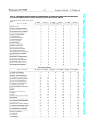 Deutscher Bundestag – 19. Wahlperiode – 177 – Drucksache 19/12141 Vorabfassung - wird durch die lektorierte Version ersetzt. Tabelle 34: Entwicklung der Mediane der monatlichen Bruttoarbeitsentgelte von sozialversicherungspflichtigen Vollzeitbeschäftigten der Kerngruppe nach den ausgeübten Tatigkeiten mit ausländischer Staatsangehörigkeit gegenüber mit deutscher Staatsangehörigkeit (Differenz in absolut und in %) Insgesamt Zeitreihe Median in Euro Differenz Stichtag Tätigkeit nach KldB 2010 Deutsche Ausländer absolut in % 1 2 3 4 Insgesamt 2.906 2.490 -416 -14,3 111 Landwirtschaft 1.898 1.489 -409 -21,5 112 Tierwirtschaft 1.633 X X X 113 Pferdewirtschaft 1.465 1.584 119 8,1 114 Fischwirtschaft 1.738 X X X 115 Tierpflege 1.848 X X X 116 Weinbau 2.362 X X X 117 Forst-,Jagdwirtschaft, Landschaftspflege 2.814 1.857 -956 -34,0 121 Gartenbau 2.293 2.007 -287 -12,5 122 Floristik 1.438 X X X 211 Berg-, Tagebau und Sprengtechnik 3.592 3.355 -237 -6,6 212 Naturstein-,Mineral-,Baustoffherstell. 2.692 2.706 14 0,5 213 Industrielle Glasherstell.,-verarbeitung 2.385 2.465 80 3,4 214 Industrielle Keramikherstell.,-verarbeit 2.440 2.564 124 5,1 221 Kunststoff,Kautschukherstell.,verarbeit 2.419 2.425 6 0,2 222 Farb- und Lacktechnik 2.656 2.822 167 6,3 223 Holzbe- und -verarbeitung 2.387 2.287 -100 -4,2 231 Papier- und Verpackungstechnik 2.878 2.815 -63 -2,2 232 Technische Mediengestaltung 2.699 2.743 44 1,6 233 Fototechnik und Fotografie 2.273 X X X 234 Drucktechnik,-weiterverarb.,Buchbinderei 2.730 2.570 -160 -5,9 241 Metallerzeugung 3.209 3.237 27 0,9 242 Metallbearbeitung 2.882 2.756 -126 -4,4 243 Metalloberflächenbehandlung 2.703 2.785 82 3,0 244 Metallbau und Schweißtechnik 2.623 2.581 -42 -1,6 245 Feinwerk- und Werkzeugtechnik 3.218 3.192 -26 -0,8 251 Maschinenbau- und Betriebstechnik 3.291 3.154 -137 -4,2 252 Fahrzeug-Luft-Raumfahrt-,Schiffbautechn. 2.800 2.970 171 6,1 31. Dezember 2012 261 Mechatronik und Automatisierungstechnik 3.247 3.427 181 5,6 262 Energietechnik 3.013 2.729 -283 -9,4 263 Elektrotechnik 3.373 2.984 -388 -11,5 271 Technische Forschung und Entwicklung > 4.800 > 4.800 X X 272 Techn. Zeichnen, Konstruktion, Modellbau 3.640 3.730 90 2,5 273 Technische Produktionsplanung,-steuerung 4.189 3.811 -378 -9,0 281 Textiltechnik und -produktion 2.306 2.419 112 4,9 282 Textilverarbeitung 2.110 2.138 28 1,3 283 Leder-, Pelzherstellung u. -verarbeitung 2.082 2.263 181 8,7 291 Getränkeherstellung 3.028 X X X 292 Lebensmittel- u. Genussmittelherstellung 2.128 1.771 -357 -16,8 293 Speisenzubereitung 1.788 1.524 -264 -14,7 311 Bauplanung u. -überwachung, Architektur 3.943 3.173 -770 -19,5 312 Vermessung und Kartografie 3.266 X X X 321 Hochbau 2.565 2.274 -291 -11,3 322 Tiefbau 2.783 2.710 -73 -2,6 331 Bodenverlegung 2.391 2.303 -88 -3,7 332 Maler.,Stuckat.,Bauwerksabd,Bautenschutz 2.414 2.376 -38 -1,6 333 Aus-,Trockenbau.Iso.Zimmer.Glas.Roll.bau 2.458 2.254 -203 -8,3 341 Gebäudetechnik 2.643 2.292 -351 -13,3 342 Klempnerei,Sanitär,Heizung,Klimatechnik 2.547 2.507 -39 -1,5 343 Ver- und Entsorgung 3.031 2.691 -340 -11,2 411 Mathematik und Statistik 4.519 X X X 412 Biologie 3.335 3.872 538 16,1 413 Chemie 3.693 3.439 -254 -6,9 414 Physik 3.863 4.166 303 7,8 421 Geologie, Geografie und Meteorologie 3.853 X X X 422 Umweltschutztechnik 2.981 X X X