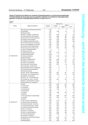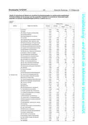 Deutscher Bundestag – 19. Wahlperiode – 187 – Drucksache 19/12141 Vorabfassung - wird durch die lektorierte Version ersetzt. Tabelle 34: Entwicklung der Mediane der monatlichen Bruttoarbeitsentgelte von sozialversicherungspflichtigen Vollzeitbeschäftigten der Kerngruppe nach den ausgeübten Tatigkeiten mit ausländischer Staatsangehörigkeit gegenüber mit deutscher Staatsangehörigkeit (Differenz in absolut und in %) Insgesamt Zeitreihe Median in Euro Differenz Stichtag Tätigkeit nach KldB 2010 Deutsche Ausländer absolut in % 1 2 3 4 944 Theater-, Film- und Fernsehproduktion 3.503 X X X 945 Veranstaltungs-, Kamera-, Tontechnik 3.341 X X X 31. Dezember 2015 946 Bühnen- und Kostümbildnerei, Requisite 3.107 X X X 947 Museumstechnik und -management 3.708 X X X Insgesamt 3.202 2.446 -755 -23,6 111 Landwirtschaft 2.114 1.718 -395 -18,7 112 Tierwirtschaft 1.776 1.746 -30 -1,7 113 Pferdewirtschaft 1.703 1.694 -8 -0,5 114 Fischwirtschaft 2.011 X X X 115 Tierpflege 2.066 1.772 -294 -14,2 116 Weinbau 2.537 X X X 117 Forst-,Jagdwirtschaft, Landschaftspflege 3.123 1.930 -1.193 -38,2 121 Gartenbau 2.513 2.059 -455 -18,1 122 Floristik 1.638 X X X 211 Berg-, Tagebau und Sprengtechnik 3.951 3.664 -287 -7,3 212 Naturstein-,Mineral-,Baustoffherstell. 2.910 2.663 -247 -8,5 213 Industrielle Glasherstell.,-verarbeitung 2.628 2.380 -248 -9,4 214 Industrielle Keramikherstell.,-verarbeit 2.656 2.636 -20 -0,8 221 Kunststoff,Kautschukherstell.,verarbeit 2.615 2.230 -385 -14,7 222 Farb- und Lacktechnik 2.854 2.811 -43 -1,5 223 Holzbe- und -verarbeitung 2.571 2.171 -400 -15,6 231 Papier- und Verpackungstechnik 3.087 2.669 -418 -13,5 232 Technische Mediengestaltung 2.855 2.824 -31 -1,1 233 Fototechnik und Fotografie 2.467 X X X 234 Drucktechnik,-weiterverarb.,Buchbinderei 2.862 2.511 -351 -12,3 241 Metallerzeugung 3.518 3.436 -82 -2,3 242 Metallbearbeitung 3.131 2.609 -522 -16,7 243 Metalloberflächenbehandlung 2.955 2.802 -153 -5,2 244 Metallbau und Schweißtechnik 2.883 2.576 -306 -10,6 245 Feinwerk- und Werkzeugtechnik 3.524 3.376 -148 -4,2 31. Dezember 2016 251 Maschinenbau- und Betriebstechnik 3.596 3.179 -417 -11,6 252 Fahrzeug-Luft-Raumfahrt-,Schiffbautechn. 3.083 3.058 -25 -0,8 261 Mechatronik und Automatisierungstechnik 3.534 3.495 -39 -1,1 262 Energietechnik 3.337 2.646 -690 -20,7 263 Elektrotechnik 3.713 2.895 -819 -22,0 271 Technische Forschung und Entwicklung > 5.400 > 5.400 X X 272 Techn. Zeichnen, Konstruktion, Modellbau 3.941 3.911 -30 -0,8 273 Technische Produktionsplanung,-steuerung 4.598 4.168 -431 -9,4 281 Textiltechnik und -produktion 2.519 2.474 -45 -1,8 282 Textilverarbeitung 2.356 2.147 -209 -8,9 283 Leder-, Pelzherstellung u. -verarbeitung 2.269 2.214 -55 -2,4 291 Getränkeherstellung 3.323 X X X 292 Lebensmittel- u. Genussmittelherstellung 2.378 1.800 -579 -24,3 293 Speisenzubereitung 2.055 1.754 -301 -14,7 311 Bauplanung u. -überwachung, Architektur 4.296 3.274 -1.022 -23,8 312 Vermessung und Kartografie 3.542 X X X 321 Hochbau 2.807 2.260 -547 -19,5 322 Tiefbau 3.112 2.831 -281 -9,0 331 Bodenverlegung 2.588 2.449 -139 -5,4 332 Maler.,Stuckat.,Bauwerksabd,Bautenschutz 2.585 2.382 -203 -7,9 333 Aus-,Trockenbau.Iso.Zimmer.Glas.Roll.bau 2.682 2.272 -410 -15,3 341 Gebäudetechnik 2.896 2.295 -602 -20,8 342 Klempnerei,Sanitär,Heizung,Klimatechnik 2.824 2.421 -403 -14,3 343 Ver- und Entsorgung 3.334 2.689 -644 -19,3 411 Mathematik und Statistik 5.134 X X X 412 Biologie 3.669 4.276 608 16,6