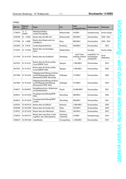 Deutscher Bundestag – 19. Wahlperiode –3– Drucksache 19/4293 Vorabfassung - wird durch die lektorierte Version ersetzt. Anlage Interne Sani- BW-Nr Name Ort Sanierungsart Zeitraum BW-N erungsaufwand A 2 Elbebrücke Hohen- 3736674 Hohenwarthe 44.000 € Instandsetzung bereits erfolgt 0440N warthe/Trennpfeiler 3638598 B 1 0360 Brücke über die DB-AG/ Hohenseeden 200.000 € Ersatzneubau 2020 - 2021 Brücke über Bundeswehr An- 3737596 B 1 0400 Burg 800.000 € Ersatzneubau 2020 - 2022 schlußgleis/ 4241602 B 2 0310 Landwehrgrabenbrücke/ Kemberg 300.000 € Ersatzneubau 2025 Brücke über ein ehemaliges 3734535 B 71 0350 Haldensleben beseitigt bereits erfolgt Gleis/ nach Unter- zusätzliche Un- keine 4131540 B 81 0130 Brücke über den Goldbach/ Heimburg suchung ermittel- tersuchungen Maßnahme bar erforderlich Brücke über die Werkszufahrt 4637622 B 91 0122 Spergau 1.500.000 € Ersatzneubau 2019 Leuna II/RFB Zeitz Brücke über die Werkszufahrt 4637622 B 91 0122 Spergau 1.500.000 € Ersatzneubau 2020 Leuna II/RFB Halle Fußgängerunterführung am Buna- 4637608 B 91 0146 werk/Fußgängerunterführung Schkopau 375.000 € Ersatzneubau 2024 (Bunatunnel), RFB Merseburg Fußgängerunterführung am Buna- 4637608 B 91 0146 werk/Fußgängerunterführung Schkopau 375.000 € Ersatzneubau 2024 (Bunatunnel), RFB Halle Einlaufbauwerk des Muldenstau- 4340517 B 100 0052 Pouch 24.000.000 € Ersatzneubau 2021 sees/Straßenbrücke Fussgängerunterführung/RFB 4638813 B 181 0220 Merseburg 400.000 € Ersatzneubau 2020 Halle Fussgängerunterführung/RFB 4638813 B 181 0220 Merseburg 400.000 € Ersatzneubau 2021 Leipzig 4439761 B 184 0130 Brücke über die DBAG/ Roitzsch 1.900.000 € Ersatzneubau 2020 3836508 B 184 0380 Brücke über den Faulen See/ Menz 350.000 € Ersatzneubau 2020 4139512 B 187 0150 Brücke über den Olbisbach/ Klieken 180.000 € Ersatzneubau 2022 Brücke über einen Rad- u.Geh- Osterburg 3236518 B 189 0172 32.000 € Instandsetzung 2019 weg/Rad- und Gehwegbrücke (Altmark) 3036619 B 189 0180 Alandbrücke Geestgottberg 1.400.000 € Ersatzneubau 2025