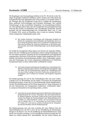 Deutscher Bundestag – 18. Wahlperiode –5– Drucksache 18/3368 ambitionierte Ziele sowohl bei der Treibhausgasminderung als auch beim Aus- bau der Erneuerbaren Energien und der Energieeffizienz eingesetzt. Die beim Europäischen Rat vereinbarten Ziele bilden eine gute Balance zwischen drei wichtigen Aspekten: Europa bekräftigt seine Vorreiterrolle im Klimaschutz und gibt ein wichtiges positives Signal an die internationalen Klimaverhandlungen. Wir schaffen Rahmenbedingungen für eine dauerhaft sichere, bezahlbare und umweltverträgliche Energieversorgung in Europa und wir gestalten Energie- und Klimapolitik in der Weise, dass die Wettbewerbsfähigkeit unserer Wirt- schaft erhalten bleibt. Darüber hinaus unterfallen Einzelheiten zu Vorbereitungen und Ablauf des in- ternen Willensbildungsprozesses der Bundesregierung dem Kernbereich exeku- tiver Eigenverantwortung, weshalb die Bundesregierung hierzu keine Stellung nimmt. Nach der Rechtsprechung des Bundesverfassungsgerichts (BVerfG) setzt der Gewaltenteilungsgrundsatz auch dem nachträglichen parlamenta- rischen Zugriff auf Informationen aus der Phase der Vorbereitung von Regie- rungsentscheidungen Grenzen, da die Regierung andernfalls durch die damit einhergehenden einengenden Vorwirkungen in der selbständigen Funktion be- einträchtigt wäre, die das Gewaltenteilungsprinzip ihr zuweist (vgl. BVerfG, Beschluss v. 17. Juni 2009, BVerfGE 124, 78, 121). 8. Teilt die Bundesregierung die Besorgnis der Fragesteller, dass die jüngsten Schlussfolgerungen des Europäischen Rates, wonach die Staats- und Re- gierungschefs im Europäischen Rat alle Aspekte des Rahmens zur Klima- und Energiepolitik fortdauernd prüfen und weiterhin gegebenenfalls stra- tegische Leitlinien vorgeben werden, insbesondere was den Konsens über vom Emissionshandelssystem erfasste Sektoren, nicht unter das ETS fal- lende Sektoren, den Verbund und die Energieeffizienz anbelangt, eine Ab- schwächung der Integrationsdichte in diesem Politikfeld bewirken könn- ten, und wenn nein, warum nicht? 9. Wie will die Bundesregierung sicherstellen, dass durch die Schlussfolge- rungen des jüngsten Europäischen Rates, wonach die Staats- und Regie- rungschefs im Europäischen Rat alle Aspekte des Rahmens zur Klima- und Energiepolitik fortdauernd prüfen und weiterhin gegebenenfalls stra- tegische Leitlinien vorgeben werden, insbesondere was den Konsens über vom ETS erfasste Sektoren, nicht unter das ETS fallende Sektoren, den Verbund und die Energieeffizienz anbelangt, nicht das organisationsrecht- liche Kompetenzgefüge der Europäischen Union unterlaufen wird, indem sie durch zu enge Vorgaben den Gestaltungsspielraum, der nach den euro- päischen Verträgen dem Ministerrat zusteht, vertragswidrig beschränken? 10. Schlussfolgert die Bundesregierung aus der Formulierung zum Konsens- prinzip für alle Aspekte des Rahmens für die Klima- und Energiepolitik und insbesondere für den ETS-Sektor, den Nicht-ETS-Sektor, den Ver- bund und die Energieeffizienz in den Schlussfolgerungen des jüngsten Eu- ropäischen Rates, dass es auf Ministerebene nicht möglich ist, in diesen Politikfeldern zu kohärenten und verbindlichen Beschlüssen zu kommen, und wenn nein, warum nicht? 11. Geht die Bundesregierung davon aus, dass durch die engen Vorgaben des Europäischen Rates für die Klima- und Energiepolitik und die Festschrei- bung des Konsensprinzips in den Ratsschlussfolgerungen die Regelungen in den Verträgen zur qualifizierten Mehrheit faktisch unterlaufen werden könnten? Die Bundesregierung beantwortet die Fragen 8 bis 11 aufgrund ihres engen sachlichen Zusammenhangs zusammen.