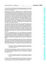 K or re kt ur Deutscher Bundestag – 18. Wahlperiode –9– Drucksache 18/5628 Vorabfassung - wird durch die lektorierte Version ersetzt. 14. Plant die Bundesregierung, die Hilfen für junge Volljährige zu stärken und auszubauen? Wenn nein, warum nicht? 15. Plant die Bundesregierung den § 41 SGB VIII für junge Volljährige zu er- weitern, die als unter 18-Jährige noch keine Leistungen der Jugendhilfe in Anspruch genommen haben? Wenn nein, warum nicht? Wegen des Sachzusammenhangs werden die Fragen 14 und 15 zusammen be- antwortet: Die Bundesregierung greift auf der Grundlage des Koalitionsvertrags im Rah- men von Bund-Länder-Arbeitsgruppen zur Weiterentwicklung der Hilfen zur Erziehung und zur Qualifizierung der Pflegekinderhilfe unter Beteiligung von Kommunen und Fachverbänden die aktuell diskutierten fachlichen Überlegun- gen zur Weiterentwicklung des SGB VIII auf. Vor dem Hintergrund der hierbei zentralen Aspekte der Qualität, Wirksamkeit und damit auch der Nachhaltigkeit von Leistungen werden in diese Überlegungen auch die Bedarfslagen junger Menschen im Hinblick auf deren Verselbständigung und Persönlichkeitsent- wicklung im Übergang zum Erwachsenenalter einbezogen. Der Prozess ist noch nicht abgeschlossen. 16. Welche Maßnahmen hat die Bundesregierung ergriffen, um „die weitge- hende Sanktionierungsregelung und -praxis im SGB II für unter 25-Jäh- rige auf ihre Wirkung und möglichen Anpassungsbedarf hin [zu] überprü- K:\Publishing\Produktion\BT\Produktion\07_Fahne\1805628\1805628.fm, 30. Juli 2015, Seite 9 fen“ und Lücken zwischen der Jugendhilfe und anderen Hilfesystemen weiter zu reduzieren? Im Koalitionsvertrag für die 18. Legislaturperiode ist verabredet, das Leistungs- und Verfahrensrecht der Grundsicherung für Arbeitssuchende zu vereinfachen und effektiver auszugestalten. Eine Bund-Länder-Arbeitsgruppe zur Rechtsver- einfachung im SGB II hat unter anderem auch Vorschläge zum Sanktionsrecht erarbeitet. Die Gespräche innerhalb der Bundesregierung zur Umsetzung der Vorschläge dauern derzeit noch an. Leistungen für junge Menschen am Übergang Schule-Beruf werden auf der Grundlage der Sozialgesetzbücher II, III und VIII durch unterschiedliche Träger erbracht. Wenn junge Menschen Unterstützung von mehreren Akteuren erhalten sollen, entsteht ein Bedürfnis nach Koordinierung und Abstimmung. Die Bun- desregierung verfolgt zur Verbesserung der rechtskreisübergreifenden Zusam- menarbeit bei der beruflichen Eingliederung junger Menschen einen Bottom-up- Ansatz, um die zahlreichen bestehenden guten Ansätze vor Ort nicht zu gefähr- den und praxisgerechte Formen der Zusammenarbeit zu fördern. Da die erfolg- reiche Etablierung einer Zusammenarbeit vor Ort voraussetzt, dass die beteilig- ten Akteure von dem entstehenden Mehrwert überzeugt sind, wirbt sie in einem politischen Prozess für eine flächendeckende Einführung von Arbeitsbündnis- sen/Jugendberufsagenturen. Diese sollen den Zugang insbesondere von benach- teiligten jungen Menschen zur Berufsausbildung erleichtern. Mit § 15 Absatz 3, § 17 Absatz 3 Satz 1 SGB I, § 18 SGB II, § 9 SGB III, § 13 Absatz 4 SGB VIII und § 81 SGB VIII bestehen bereits gesetzliche Vorschriften zu Verpflichtungen zur Zusammenarbeit für die Sozialleistungsträger (auch in Verbindung mit gemeinnützigen und freien Organisationen). ur kt re or K
