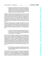 K or re kt ur Deutscher Bundestag – 18. Wahlperiode –5– Drucksache 18/5628 Vorabfassung - wird durch die lektorierte Version ersetzt. 8. Welche präventiven Maßnahmen hat die Bundesregierung ergriffen, um unabhängig vom Einkommensstatus der Eltern positiv in die Bildungsbio- graphien Jugendlicher einzugreifen, nachdem die Ergebnisse des IQB- Ländervergleichs 2012 zeigen, „dass in Mathematik auf der Globalskala bundesweit 25 Prozent der Gesamtpopulation zielgleich unterrichteter Neuntklässlerinnen und Neuntklässler den Kultusministerkonferenz-Min- deststandard für den Mittleren Schulabschluss verfehlen“? Während der IQB-Ländervergleich in Mathematik im Jahr 2012 zum ersten Mal stattfand und von daher keine Trendaussagen möglich sind, lässt sich aus den seit dem Jahr 2000 alle drei Jahre durchgeführten PISA-Tests ablesen, dass sich die Leistungen der Neuntklässlerinnen und Neuntklässler in Deutschland konti- nuierlich verbessert haben. Erreichte Deutschland 2000 in Mathematik noch eine Punktzahl von 490, so waren es im Jahr 2012 bereits 514 Punkte. Wie die OECD in ihrer Zusammenfassung der Ergebnisse von PISA dem Jahr 2012 be- tont, profitierten von dieser Steigerung „vor allem leistungsschwache und sozial benachteiligte Schüler“; diese „schnitten 2012 um Einiges besser ab, als noch 2003“. Grundsätzlich liegt die Förderung von Kindern und Jugendlichen im schuli- schen Bereich ausschließlich in der Zuständigkeit der Länder, so auch die För- derung von Kompetenzen im Mathematikunterricht. Die Bundesregierung kann hier Unterstützung geben, indem sie zum Beispiel mathematisch-naturwissen- schaftliche Initiativen wie „Haus der kleinen Forscher“ in den frühen Bildungs- phasen oder Mathematikwettbewerbe flankierend zum Fachunterricht unter- stützt. K:\Publishing\Produktion\BT\Produktion\07_Fahne\1805628\1805628.fm, 30. Juli 2015, Seite 5 9. Wie bewertet die Bundesregierung den Erfolg der Programme „Schulver- weigerung – Die 2. Chance“ und „JUGEND STÄRKEN im Quartier“ ge- messen an den Zielen, „allen jungen Menschen in Deutschland Zugang zu einer ihren Fähigkeiten und Interessen entsprechenden Ausbildung“ (vgl. Koalitionsvertrag, S. 101) zu ermöglichen? Das aus Mitteln des Europäischen Sozialfonds (ESF) in der Förderperiode der Jahre 2014 bis 2020 geförderte Modellvorhaben „JUGEND STÄRKEN im Quartier“ integriert bewährte Ansätze und Methoden aus den bisherigen ESF- Modellprogrammen der Initiative JUGEND STÄRKEN (unter anderem „Schul- verweigerung – Die 2. Chance“ und „Kompetenzagenturen“). Die rund 180 Mo- dellkommunen des neuen Programms setzen Angebote der Jugendsozialarbeit entsprechend der Bedarfslage vor Ort um und unterstützen junge Menschen mit besonderem Hilfebedarf am Übergang Schule-Beruf damit bei ihrer schulischen, beruflichen und sozialen Integration. Da das Programm erst im Jahr 2015 gestar- tet ist, lassen sich derzeit noch keine Aussagen über den Erfolg treffen. Ziel ist, in der Förderphase der Jahre 2015 bis 2018 über 50 000 junge Menschen zu er- reichen. 10. Welche Maßnahmen hat die Bundesregierung darüber hinaus konkret er- griffen, um die Zugangsmöglichkeiten zur Berufsausbildung für bisher benachteiligte Gruppen Jugendlicher und junger Erwachsener zu fördern bzw. zu gewährleisten? Mit dem Fünften Gesetz zur Änderung des Vierten Buches Sozialgesetzbuch und anderer Gesetze sind für den Übergang von der Schule in den Beruf in die- sem Jahr bereits zwei wichtige Änderungen im Dritten Buch Sozialgesetzbuch in Kraft getreten. Der mit ausbildungsbegleitenden Hilfen förderungsfähige Per- sonenkreis wurde ausgeweitet. Junge Menschen, die ausbildungsbegleitende Hilfen zur Aufnahme und zum erfolgreichen Abschluss einer betrieblichen Be- ur kt re or K