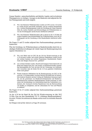 Drucksache 19/9037 – 12 – Deutscher Bundestag – 19. Wahlperiode Vorabfassung - wird durch die lektorierte Version ersetzt. Genaue Standort-, naturschutzfachliche und ähnliche Aspekte sind im konkreten Planungsprozess zu würdigen. Aussagen zu den Baukosten sind aufgrund des frü- hen Planungsstands noch nicht möglich. 21. Wie viele Kilometer Wildschutzzäune wurden seit 2012 an der A 24 errich- tet, welche Kosten sind hierfür entstanden, und aus welchem Haushaltstitel bzw. welchem Bundesprogramm wurde die Errichtung der Zäune finanziert (bitte die exakten Standorte und Kilometerlängen der Wildschutzzäune so- wie das Errichtungsjahr und die Kosten tabellarisch auflisten)? 22. Wie viele Kilometer Wildschutzzäune gibt es derzeit an der A 24 (bitte die exakten Standorte und Kilometerlängen der Wildschutzzäune sowie das Er- richtungsjahr und die Zuordnung zu den Bundesländern tabellarisch auflis- ten)? Die Fragen 21 und 22 werden aufgrund ihres Sachzusammenhangs gemeinsam beantwortet. Über die Errichtung von Wildschutzzäunen an Bundesfernstraßen durch die zu- ständigen Straßenbauverwaltungen der Länder liegen der Bundesregierung keine eigenen Erkenntnisse vor. 23. Wie viele Mittel sind seit 2012 für das Ziel der Wiedervernetzung an der A 24 investiert worden, und welche konkreten Maßnahmen wurden jeweils mit welchen Summen aus welchen Programmen, Haushaltstiteln, Sonder- fonds oder Budgets finanziert bzw. gefördert? 24. Aus welchen Gründen werden, obwohl nach heutigem Naturschutzrecht von Bund und Ländern beim Neu- und Ausbau von Bundesfernstraßen regelmä- ßig Querungshilfen für Tiere mit dem Ziel der Vernetzung von Lebensräu- men vorzusehen sind, die beiden für die A 24 neu geplanten Grünbrücken bisher nicht gebaut? 25. Welche konkreten Maßnahmen hat die Bundesregierung seit 2012 im Be- reich der A 24 (insbesondere zwischen Dreieck Havelland und AS Suckow, bitte konkrete Standorte und den Umfang der Maßnahmen benennen) ergrif- fen, um das gemeinsam von Bundesumweltministerium und Bundesver- kehrsministerium erarbeitete Bundesprogramm Wiedervernetzung zu reali- sieren, die Zerschneidung von Lebensräumen durch das Verkehrsnetz zu re- duzieren, den Austausch zwischen Populationen trotz der Barrierewirkung von Straßen zu ermöglichen, und die Lebensräume für Tiere und Pflanzen zu schützen? Die Fragen 23 bis 25 werden aufgrund ihres Sachzusammenhangs gemeinsam beantwortet. An der A 24 hat der Bund für das Ziel der Wiedervernetzung im Jahr 2012 2,4 Mio. Euro aus dem Haushaltstitel 741 53 „Erhaltung (Bundesautobahnen)“ investiert. Weitere Investitionen des Bundes setzten noch zu erzielendes Baurecht voraus. Im Übrigen wird auf die Antwort zu Frage 20 verwiesen. Satz: Satzweiss.com Print, Web, Software GmbH, Mainzer Straße 116, 66121 Saarbrücken, www.satzweiss.com Druck: Printsystem GmbH, Schafwäsche 1-3, 71296 Heimsheim, www.printsystem.de Vertrieb: Bundesanzeiger Verlag GmbH, Postfach 10 05 34, 50445 Köln, Telefon (02 21) 97 66 83 40, Fax (02 21) 97 66 83 44, www.betrifft-gesetze.de ISSN 0722-8333