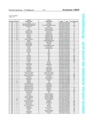 Deutscher Bundestag – 19. Wahlperiode – 119 – Drucksache 19/9816 Vorabfassung - wird durch die lektorierte Version ersetzt. Drucksache 19/09336, Anlage 1 - 2017 zwischen zwischen Bundesland BAB-Nr. Anschlussstelle A Anschlussstelle E Beginn Ende Art der Maßnahme SL 620 AS Sbr.-Gersweiler AS Völklingen Industriegebiet 01.03.2017 30.06.2017 I1 SL 6 AS St. Ingbert-West AD Saarbrücken 03.04.2017 01.09.2017 BrI SL 620 AD Saarbrücken AS Völklingen 03.04.2017 01.09.2017 BrI SL 8 AS Dillingen-Mitte AD Saarlouis 20.02.2017 10.03.2017 BrI SL 623 AS Sulzbach AS Sulzbach 01.07.2017 15.08.2017 BrI SL 8 AS Homburg-Einöd LG SL/RP 14.06.2017 17.06.2017 E1 SL 1 AS Riegelsberg AS Sbr.-v.d.Heydt 12.05.2017 28.08.2017 E1 SL 8 AS Schwalbach-Schwarzenholz AS Heusweiler 28.08.2017 02.09.2017 E1 SL 8 AS Merzig AS Rehlingen 04.10.2017 20.10.2017 E1 SL 8 AS Schwalbach AS Schwalbach-Schwarzenholz 29.05.2017 31.10.2017 E2 SL 8 AS Merzig AD Saarlouis 22.05.2017 30.10.2017 E2 SL 620 AS Völklingen-Geislautern AS Völklingen-Wehrden 19.05.2017 22.05.2017 E1 SL 620 AS Völklingen-Wehrden AS Wadgassen 14.06.2017 19.06.2017 E1 SL 620 AS Völklingen-Wehrden AS Saarlouis-Lisdorf 30.06.2017 17.07.2017 E1 SL 1 AD Nonnweiler AS Nonnweiler-Primstal 16.10.2017 10.11.2017 E1 SL 6 AS Saarbrücken-Fechingen AD Saarbrücken 14.07.2017 17.07.2017 E1 SL 8 AS Merchweiler AS Friedrichsthal-Bildstock 05.06.2017 12.06.2017 E1 SL 8 AK Saarbrücken AS Merchweiler 05.06.2017 12.06.2017 E1 SL 8 AS Dillingen-Süd AS Schwalbach 01.12.2017 31.03.2018 I1 SL 1 AD Nonnweiler AS Nonnweiler-Primstal 16.10.2017 10.11.2017 E1 SL 8 AS Merchweiler AD Friedrichsthal 05.12.2017 24.07.2018 I1 SN 4 Dresden Altstadt Dresden Wilder Mann 03.05.2017 08.10.2017 E1 SN 4 Dreieck Dresden-West Dresden Altstadt 12.06.2017 12.08.2017 BRI SN 4 Wilsdruf Dreieck Dresden-West 12.06.2017 12.08.2017 BRI SN 4 Siebenlehn Dreieck Nosssen 03.05.2017 23.05.2017 BRI SN 4 Hermsdorf Pulsnitz 12.06.2017 20.10.2017 E1 SN 4 Ottendorf Okrilla Pulsnitz 01.09.2017 01.12.2017 BRN SN 4 Weiáenberg Kodersdorf 14.08.2017 01.09.2017 BRI SN 4 Nieder Seifersdorf G”rlitz 17.07.2017 26.09.2017 E1 SN 14 Leipzig Mitte Leipzig Nord 24.04.2017 19.07.2017 E1 SN 14 Leipzig Mitte Schkeuditz 09.08.2017 08.12.2017 E1 SN 72 Treuen Zwickau West 24.04.2017 25.08.2017 E1 SN 72 Plauen Sd Plauen Ost 20.03.2017 19.05.2017 E1 SN 72 Plauen Sd Plauen Ost 22.05.2017 30.06.2017 E1 SN 72 Plauen Sd Treuen 17.07.2017 28.09.2017 E1 SN 72 Landesgrenze BY/SN Pirk 07.06.2017 18.08.2017 BRI ST 2 MD-Rothensee Magdeburg-Zentrum 18.04.2017 03.08.2017 BRI ST 2 MD-Rothensee Magdeburg-Zentrum 04.08.2017 13.10.2017 BRI ST 9 Dessau-Ost Halle 01.06.2017 22.12.2017 I2 ST 9 Großkugel Leipzig-West 20.03.2017 14.07.2017 BRI ST 9 Leipzig-West Kreuz Ripachtal 15.05.2017 27.10.2017 I2 ST 14 HAL-Tornau HAL-Trotha 12.06.2017 30.10.2017 I2 ST 14 HAL-Trotha Löbejün 21.05.2017 30.11.2017 I2 ST 14 Plötzkau Staßfurt 01.06.2017 31.10.2017 I2 ST 14 Halle-Ost Halle-Tornau 04.09.2017 30.11.2017 I2 ST 38 Merseburg-Nord Leuna 15.06.2017 29.09.2017 I2 TH 4 Rüdersdorf Hermsdorf-Ost 04.09.2017 31.12.2017 U TH 4 Jena-Zentrum Stadtroda 11.09.2017 06.07.2018 BRI TH 4 Stadtroda Jena-Zentrum 11.09.2017 06.07.2018 BRI TH 4 Hermsdorf-Ost Rüdersdorf 04.09.2017 31.12.2017 U TH 9 Hermsdorf-Süd Bad Klosterlausnitz 08.05.2017 21.06.2017 E2 TH 9 Bad Klosterlausnitz Hermsdorf-Süd 21.06.2017 06.10.2017 E2 TH 71 Arnstadt-Süd Ilmenau-Ost 17.05.2016 16.10.2017 AS TH 71 Ilmenau-Ost Arnstadt-Süd 17.05.2016 16.10.2017 AS TH 71 Sömmerda-Ost Sömmerda-Süd 08.05.2017 21.06.2017 E1 TH 71 Sömmerda-Süd Sömmerda-Ost 21.06.2017 30.07.2017 E1 TH 38 Heringen Nordhausen 03.04.2017 15.07.2017 BRI TH 38 Nordhausen Heringen 15.07.2017 19.09.2017 BRI TH 38 Bleicherode Großwechungen 15.05.2017 08.09.2017 U TH 38 Breitenworbis Bleicherode 01.05.2017 31.05.2017 BRI TH 38 Bleicherode Breitenworbis 01.05.2017 31.05.2017 BRI