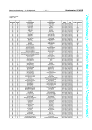 Drucksache 19/9816 – 114 – Deutscher Bundestag – 19. Wahlperiode Vorabfassung - wird durch die lektorierte Version ersetzt. Drucksache 19/09336, Anlage 1 - 2017 zwischen zwischen Bundesland BAB-Nr. Anschlussstelle A Anschlussstelle E Beginn Ende Art der Maßnahme NW 52 Essen-Bergerhausen Dreieck Essen-Ost 09.07.2017 01.08.2017 TIS NW 52 Essen-Süd Dreieck Essen-Ost 30.07.2016 09.07.2017 TIS NW 3 Kreuz Ratingen-Ost Mettmann 01.06.2017 25.06.2017 I2 NW 44 Düsseldorf-Flughafen Kreuz Düsseldorf-Nord 01.07.2017 30.06.2018 U NW 57 Dreieck Neuss-Süd Dormagen 12.12.2015 10.02.2017 BRI NW 57 Dreieck Neuss-Süd Dormagen 11.02.2017 31.12.2017 BRI NW 46 Neuss-Uedesheim Düsseldorf-Bilk 07.05.2016 30.09.2017 BRI NW 52 Kreuz Neersen Kaarst-Nord 14.07.2017 30.08.2017 I2 NW 46 Neuss-Uedesheim Düsseldorf-Bilk 24.04.2017 08.09.2017 U NW 52 Mönchengladbach-Neuwerk Kreuz Neersen 01.07.2017 28.11.2017 E2 NW 52 Mönchengladbach-Neuwerk Kreuz Neersen 09.01.2017 28.02.2017 E2 NW 52 Niederkrüchten Hostert 01.03.2017 31.03.2017 I2 NW 52 Mönchengladbach-Nord Kreuz Neersen 01.04.2017 30.10.2017 I2 NW 52 Mönchengladbach-Nord Kreuz Neersen 01.11.2017 30.04.2018 I2 NW 61 Kaldenkirchen-Süd Nettetal 01.03.2017 30.04.2017 U NW 52 Kreuz Neersen Schiefbahn 12.06.2017 16.06.2017 I2 NW 52 Schiefbahn Kaarst-Nord 16.06.2017 23.06.2017 I2 NW 52 Schiefbahn Kaarst-Nord 23.06.2017 29.06.2017 I2 NW 52 Schiefbahn Kaarst-Nord 29.06.2017 07.07.2017 I2 NW 1 Remscheid Wermelskirchen 28.05.2011 30.06.2018 BRI NW 1 Remscheid Wermelskirchen 28.05.2011 30.06.2018 BRI NW 46 Wuppertal-Katernberg Wuppertal-Elberfeld 01.09.2017 30.12.2017 E2 NW 1 Wuppertal-Langerfeld Wuppertal-Ronsdorf 29.09.2013 01.09.2018 BRI NW 535 Wülfrath Sonnborner Kreuz 21.04.2017 24.04.2017 I2 NW 535 Velbert Tönisheide 05.05.2017 08.05.2017 I2 NW 535 Velbert Tönisheide 14.06.2017 23.06.2017 I2 NW 1 Burscheid Kreuz Leverkusen 03.09.2016 02.01.2017 BRI NW 1 Burscheid Kreuz Leverkusen 03.06.2017 30.11.2017 BRI NW 1 Burscheid Kreuz Leverkusen 02.01.2017 31.03.2017 BRI NW 46 Wuppertal-Barmen Wuppertal-Wichlinghausen 23.09.2017 30.08.2019 E2 NW 46 Wuppertal-Barmen Wuppertal-Wichlinghausen 22.03.2017 18.08.2017 E2 NW 44 Heiligenhaus-Hetterscheidt Velbert-Nord 22.06.2016 31.03.2017 BRI NW 46 Wuppertal-Barmen Wuppertal-Wichlinghausen 22.07.2016 31.12.2028 U NW 1 Remscheid-Lennep Remscheid 01.04.2017 30.10.2017 BRI NW 1 Burscheid Kreuz Leverkusen 01.04.2017 30.05.2017 BRI NW 46 Haan-Ost W.-Cronenberg 13.03.2017 09.10.2018 E2 NW 46 Haan-Ost Sonnborner Kreuz 12.11.2016 13.02.2017 E2 NW 46 Haan-Ost W.-Cronenberg 14.11.2016 31.01.2017 E2 NW 1 Wuppertal-Ronsdorf Remscheid-Lennep 01.04.2017 30.11.2017 BRI NW 1 Wermelskirchen Burscheid 01.05.2017 30.03.2018 BRI NW 1 Burscheid Kreuz Leverkusen 01.04.2017 10.10.2017 BRI NW 1 Wermelskirchen Burscheid 10.03.2017 19.04.2017 E2 NW 44 Kreuz Aachen Broichweiden 27.01.2016 31.05.2017 U NW 544 Kreuz Aachen Würselen 10.11.2016 10.01.2017 U NW 4 Grenzübergang Vetschau Kreuz Aachen 10.06.2017 01.07.2018 E2 NW 44 Jülich-West Jülich-Ost 04.08.2017 18.11.2017 BRI NW 44 Jülich-West Jülich-Ost 18.11.2017 20.01.2018 BRI NW 4 Aachen-Zentrum Kreuz Aachen 15.11.2016 30.12.2017 U NW 44 Kreuz Aachen Begau 28.02.2017 30.05.2017 I2 NW 44 Kreuz Aachen Begau 01.04.2017 30.09.2018 I2 NW 44 Aachen-Lichtenbusch Aachen-Brand 15.10.2017 21.10.2018 Sch NW 4 Weisweiler Düren 01.10.2017 01.12.2018 U NW 4 Aachen-Zentrum Kreuz Aachen 15.11.2016 31.05.2017 U NW 44 Begau Alsdorf 15.02.2017 17.03.2017 BRI NW 565 BN-Beuel BN-Hardtberg 01.12.2017 01.11.2018 U NW 61 Swisttal Rheinbach 14.11.2016 14.11.2017 Sch NW 562 BN-Ramersdorf Kreuz Bonn-Ost 23.11.2016 30.09.2017 U NW 565 BN-Lengsdorf BN-Hardtberg 01.11.2017 18.09.2018 BRI NW 565 BN-Endenich BN-Lengsdorf 30.11.2016 28.10.2017 I2 NW 565 BN-Endenich BN-Lengsdorf 29.10.2017 28.10.2018 I2 NW 61 Miel Rheinbach 25.01.2017 30.06.2018 U NW 555 Bornheim (Rhld.) Kreuz Bonn-Nord 03.11.2017 30.04.2018 Sch NW 553 Brühl Brühl-Nord 09.04.2017 10.06.2017 E2 NW 553 Brühl Brühl-Nord 05.12.2016 11.03.2017 E2 NW 553 Brühl Brühl-Nord 01.04.2017 30.06.2018 E2 NW 1 Gleuel Hürth 01.04.2017 28.07.2017 Sch NW 553 Brühl-Süd Brühl-Ost 01.08.2016 31.03.2017 E2 NW 1 Hürth Erftstadt 18.08.2016 17.01.2017 U NW 1 Gleuel Dreieck Erfttal 09.06.2017 30.06.2017 E2 NW 46 Jüchen / AN Jüchen Kapellen 13.06.2017 30.09.2017 E2 NW 46 Jüchen / AN Jüchen Kapellen 01.10.2017 28.02.2018 E2 NW 46 Dreieck Holz Grevenbroich 12.01.2017 10.03.2017 ENT